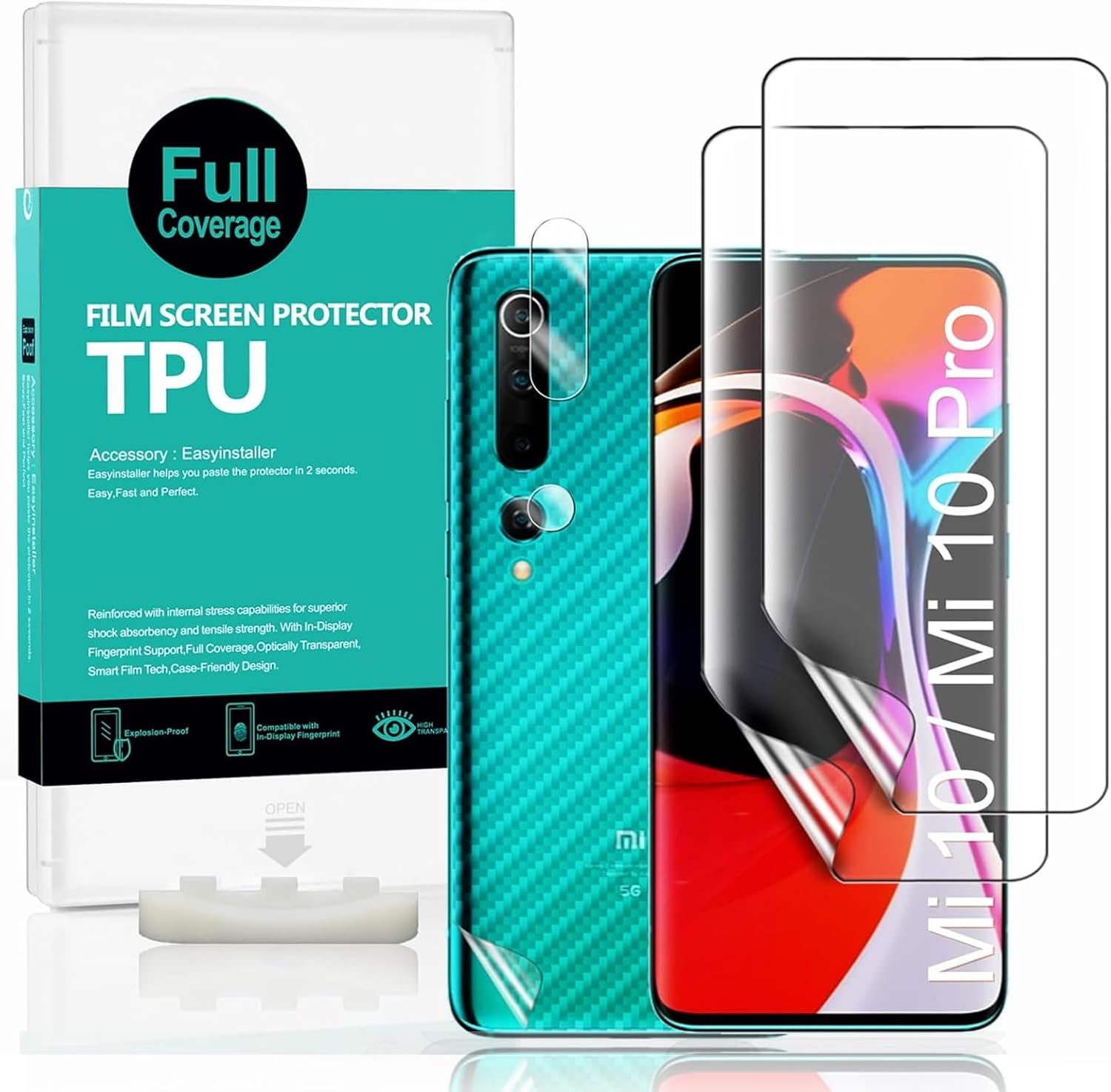 Ibywind 2 Piezas Protector de Pantalla para Xiaomi Mi 10/10 Pro 6.67", Película TPU Flexible, Con 1 Pieza Protector de Lente de Cámara, 1 Pieza Película Posterior, Sin Burbujas[Fácil de instalar]