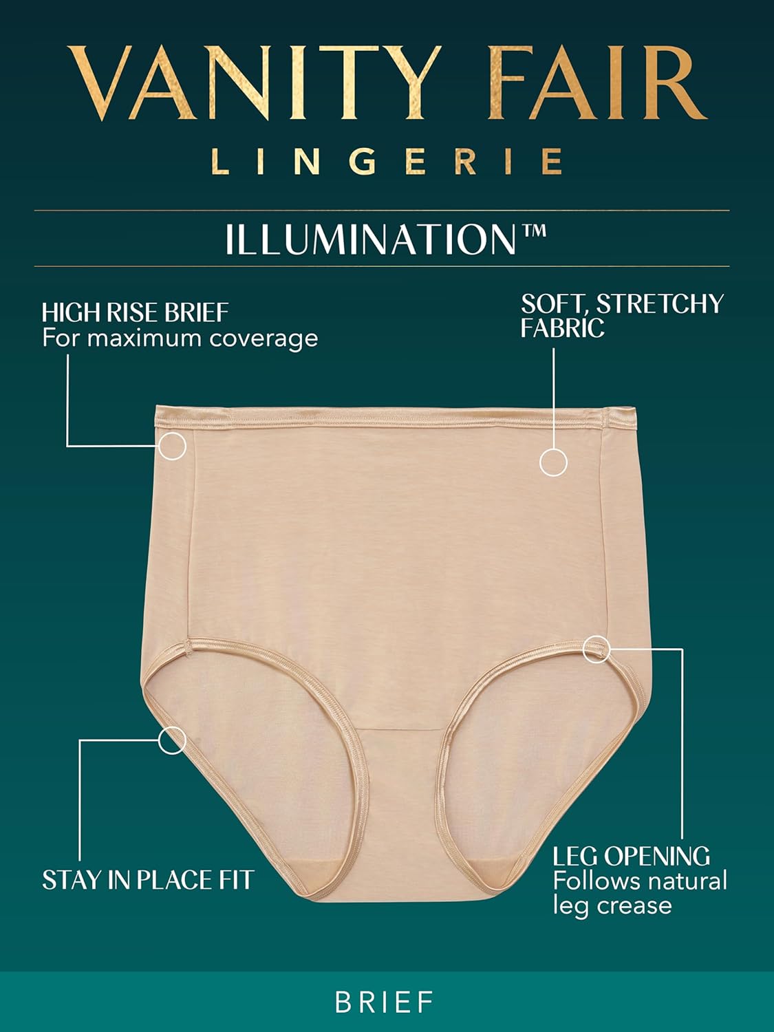 Vanity Fair Women's Illumination Brief Panties, Silky Stretch & Satin Trim