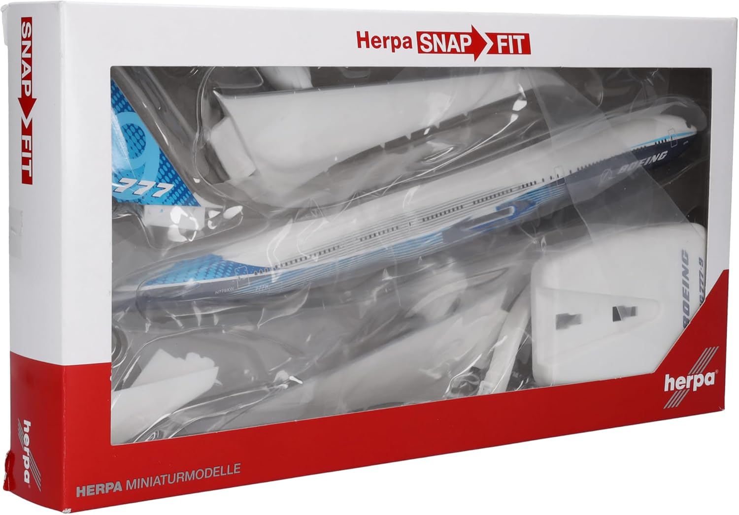 Herpa Snap-Fit Model Airplane Boeing 777-9, N779XW Passenger Aircraft Model with Stand, Miniature in Scale 1:250, Collector's Item, Plastic