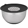 NESTING design: the mixing bowl and colander stack inside one another | Includes LID that fits tightly on both the mixing bowl or the colander. | Includes SLICER and GRATER attachments. You can slice some carrots or grate some Parmesan on your tossed salad.