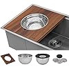 ACCESSORIES SET for Ruvati Worksation Sinks: Includes solid wood PLATFORM, 5 quart MIXING BOWL, perforated COLANDER, black plastic LID, SLICER attachment, and 2 different size GRATER attachments.