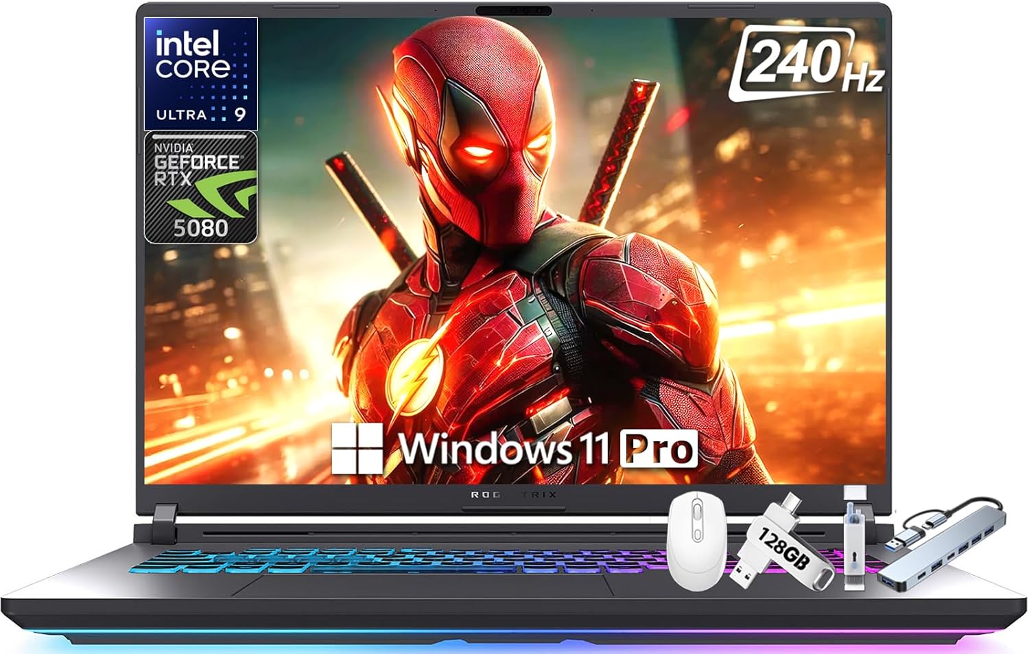 ASUS ROG Strix G18 Gaming Laptop, Microsoft Office Lifetime License, Intel 24-Core Ultra 9 275HX, NVIDIA GeForce RTX 5080, 18" 2.5K 240Hz ROG Display, 32 GB DDR5 RAM, 2 TB SSD, Backlit, Windows 11 Pro