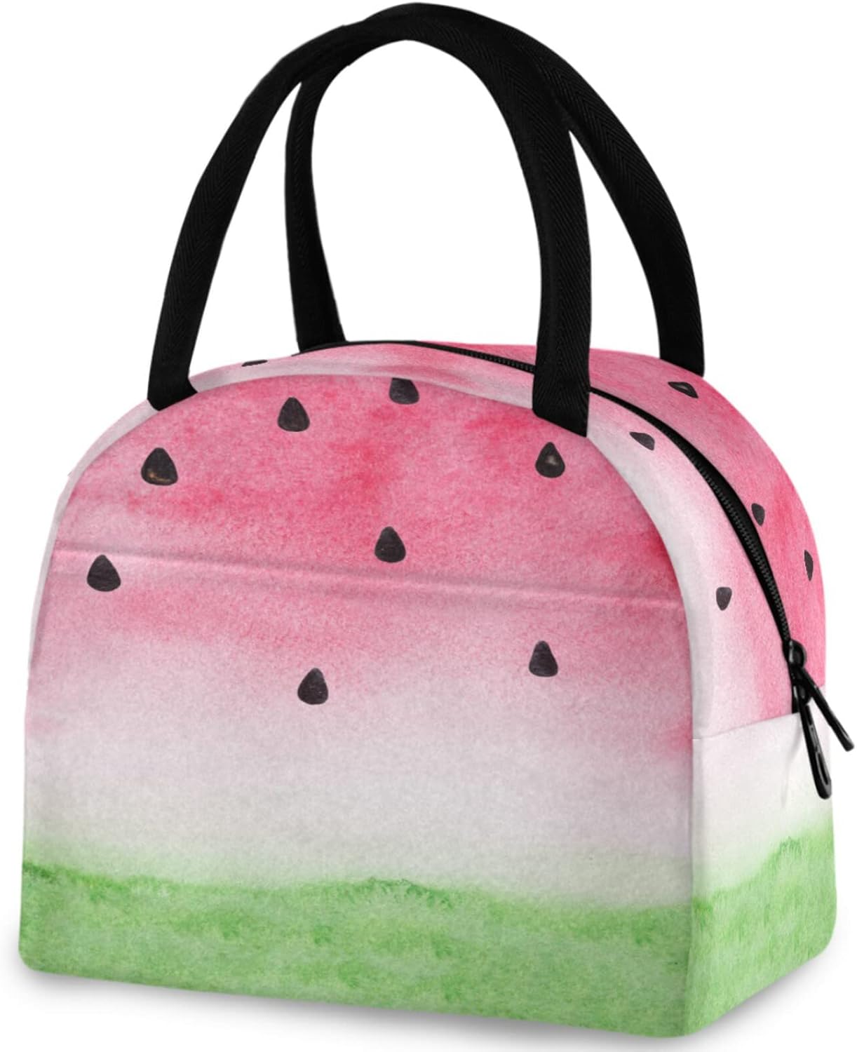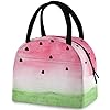 Pink and Green Watercolor Watermelon Reusable Lunch Tote Bag with Front Pocket Zipper Closure Insulated Thermal Cooler Container Bag for Man Women Work Picnic Travel Beach Fishing