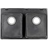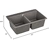 The 33" Totten double-bowl sink has a pair of evenly split basins that make dishwashing and food preparation easy. A low-maintenance addition to your kitchen, this product is made of granite composite that's resistant to extreme temperatures, denting, and scratching. A rear drain location provides more room to work without blocking the drain, as well as clearing space for storage in the cabinet below. A dual-mount design, this basin can be installed as a drop-in or undermount sink.Signature Hardware 948467 Features: Covered under Signature Hardware's 25 year limited warranty Constructed of granite composite Dual installation “ sink can be installed under the counter top or be dropped into a cutout in the countertop It is recommended to have the sink at the job site before cutting cabinet or counter top Resistant to heat, stains, and scratchesSignature Hardware 948467 Specifications: Sink Length: 33" (left to right) Sink Width: 22" (front to back) Sink Height: 9-1/2" (top to bottom) Basin Dimensions (Left): 14-1/4" L x 16-1/2" W x 9-1/2" D Basin Dimensions (Right): 14-1/4" L x 16-1/2" W x 9-1/2" D Minimum Cabinet Size: 36"