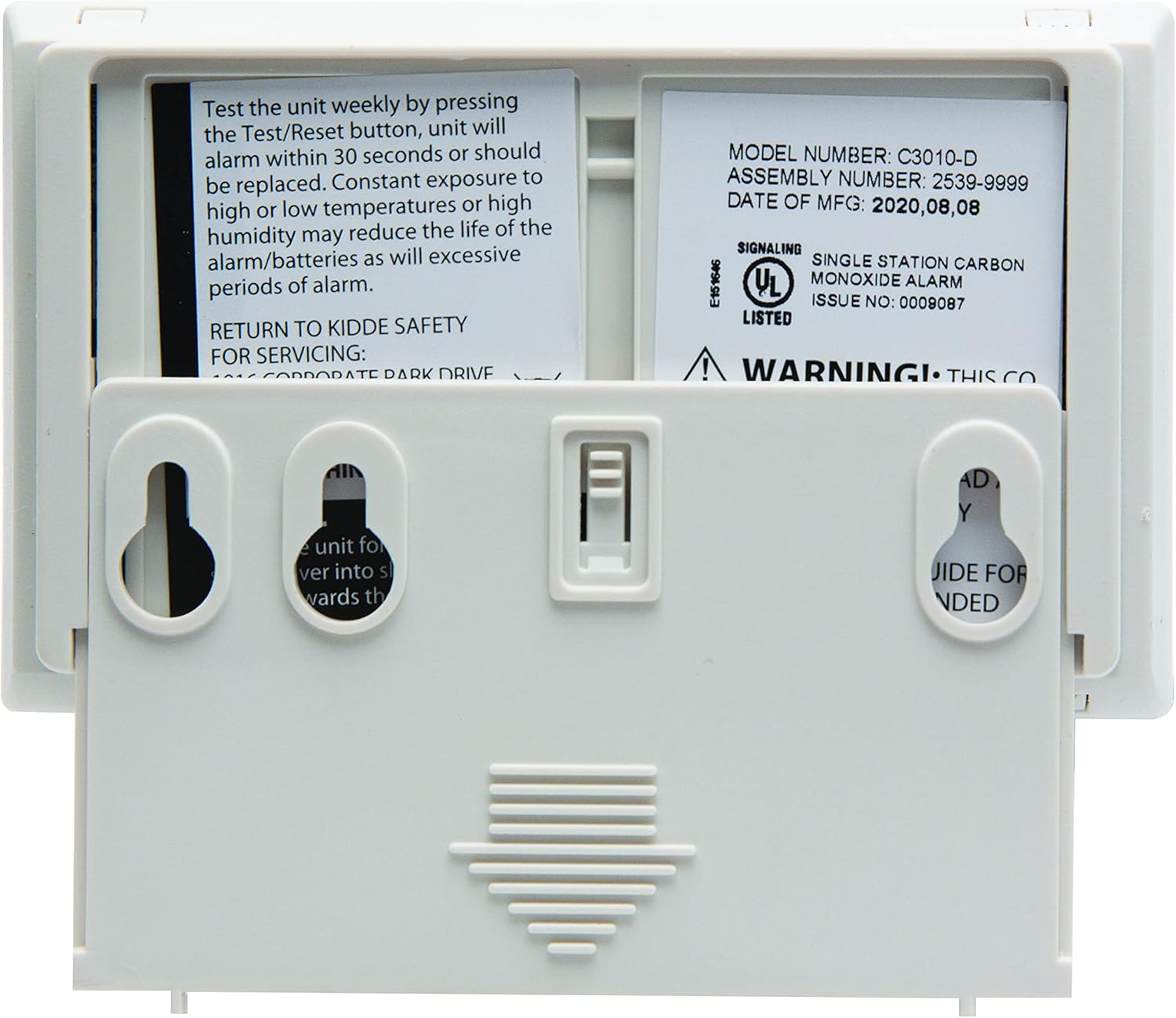 The Kidde Carbon Monoxide Detector with 10-Year Battery & Digital Display, model C3010D, is a carbon monoxide detector that uses electrochemical sensor technology to detect carbon monoxide. The CO detector is powered by a 10-year lithium battery that never needs replacing, plus protects during a power failure. The Kidde alarm is conveniently designed and portable enough for travel - simply install it on a wall or place it on a tabletop. When carbon monoxide is detected, an 85-decibel alarm will sound & a red LED will flash. A green LED indicates that the alarm is receiving power. And an amber LED indicates when it's time to replace the detector. The test-hush button allows you to test the battery operations as well as temporarily silence the low battery chirp warning. Plus, peak level memory records the last time carbon monoxide was detected or when the unit was last tested. Install a smoke detector & carbon monoxide detector on every level of your home and near bedrooms to help keep your family safe from fire & poisonous gas. UL Certified with a 10-year limited manufacturer's warranty.