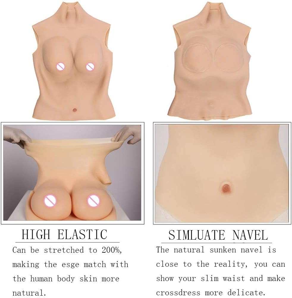 Liifun Silicone Breast Forms for Crossdressers Trans Half Body Plate Fake Boobs Silk Cotton Filled for Longwear (D/E/G/H Cup)