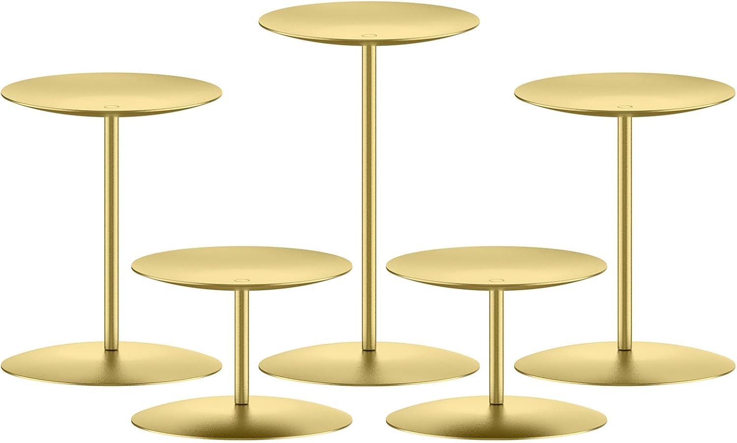 smtyle Gold Iron Metal Candle Holders for Pillar Candles Set of 5 Discs Mantel Centerpiece for Table Setting Dinner Party Wedding Event