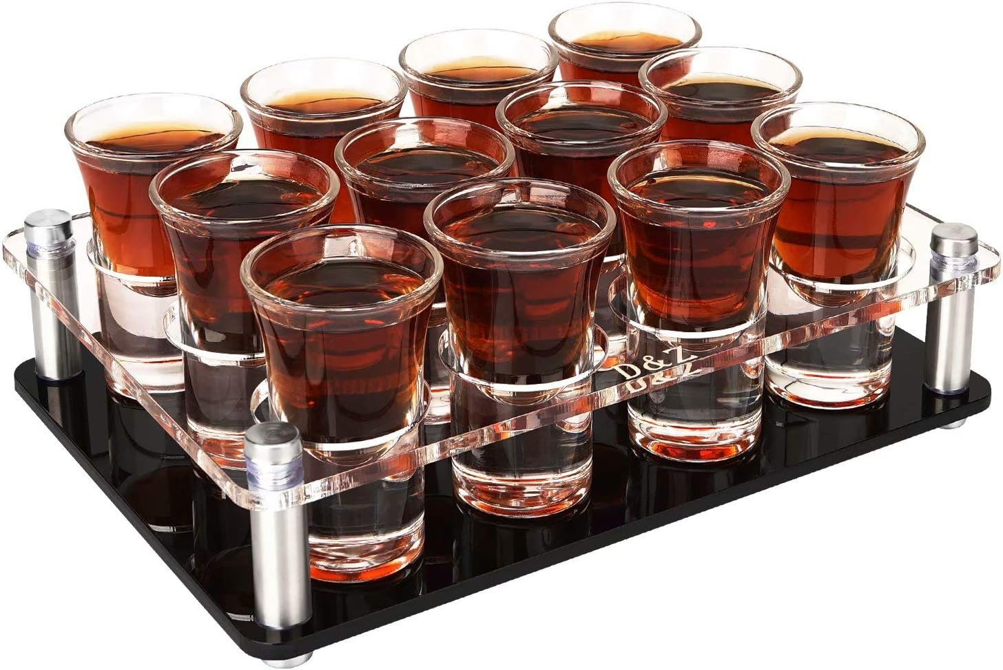 Bandeja para Vasos de Trago: El divertido soporte para vasos de trago está compuesto por 2 placas de acrílico de alta densidad premium. Es resistente, elegante, clásico, de aspecto agradable y apilable, fácil de transportar.