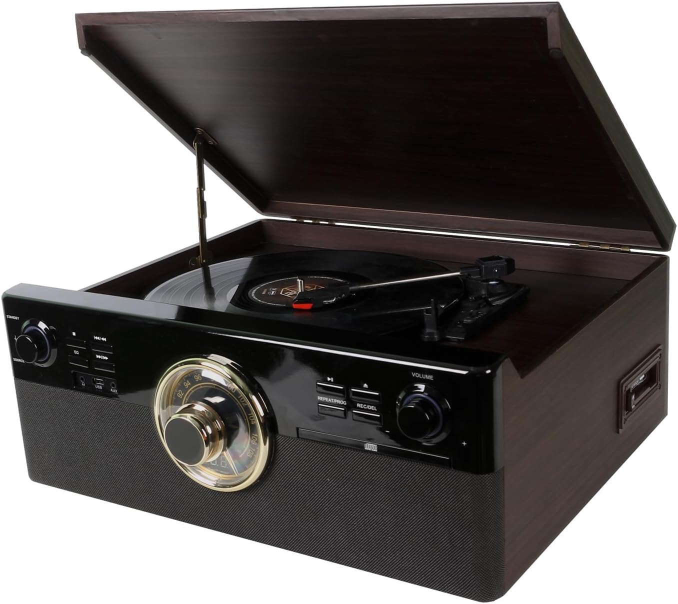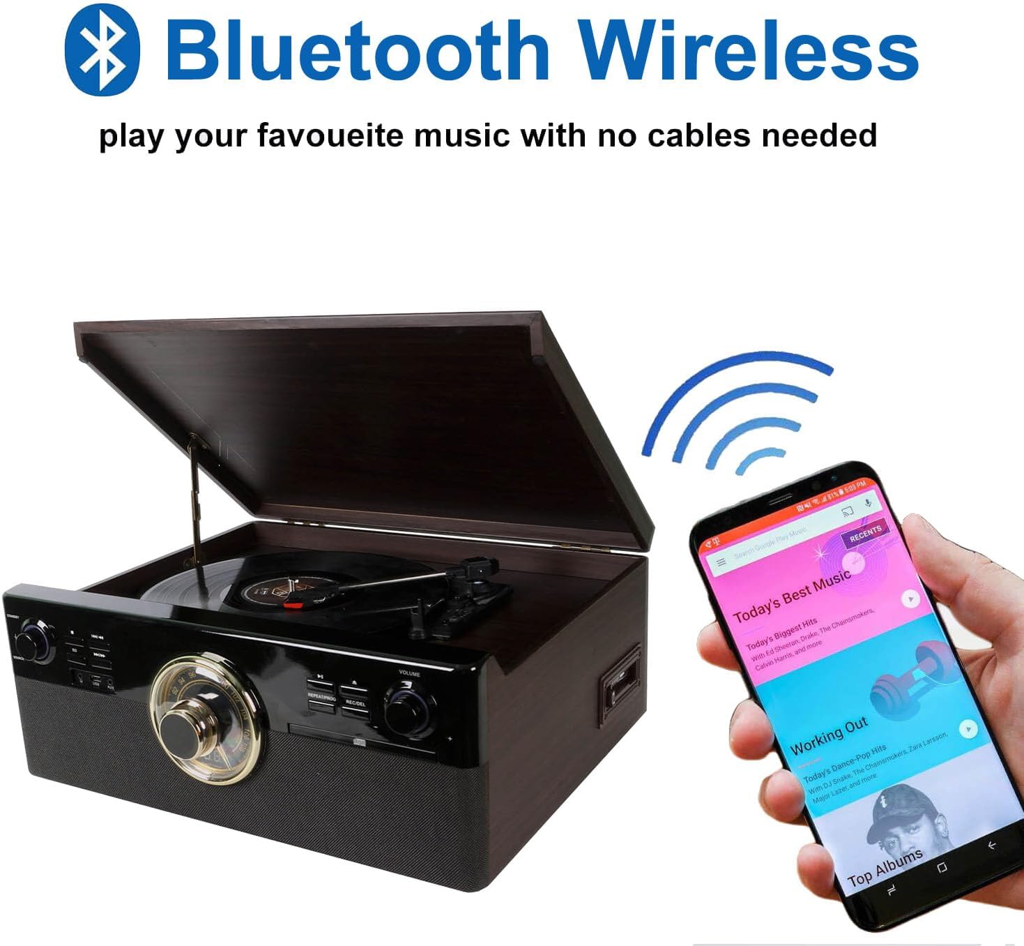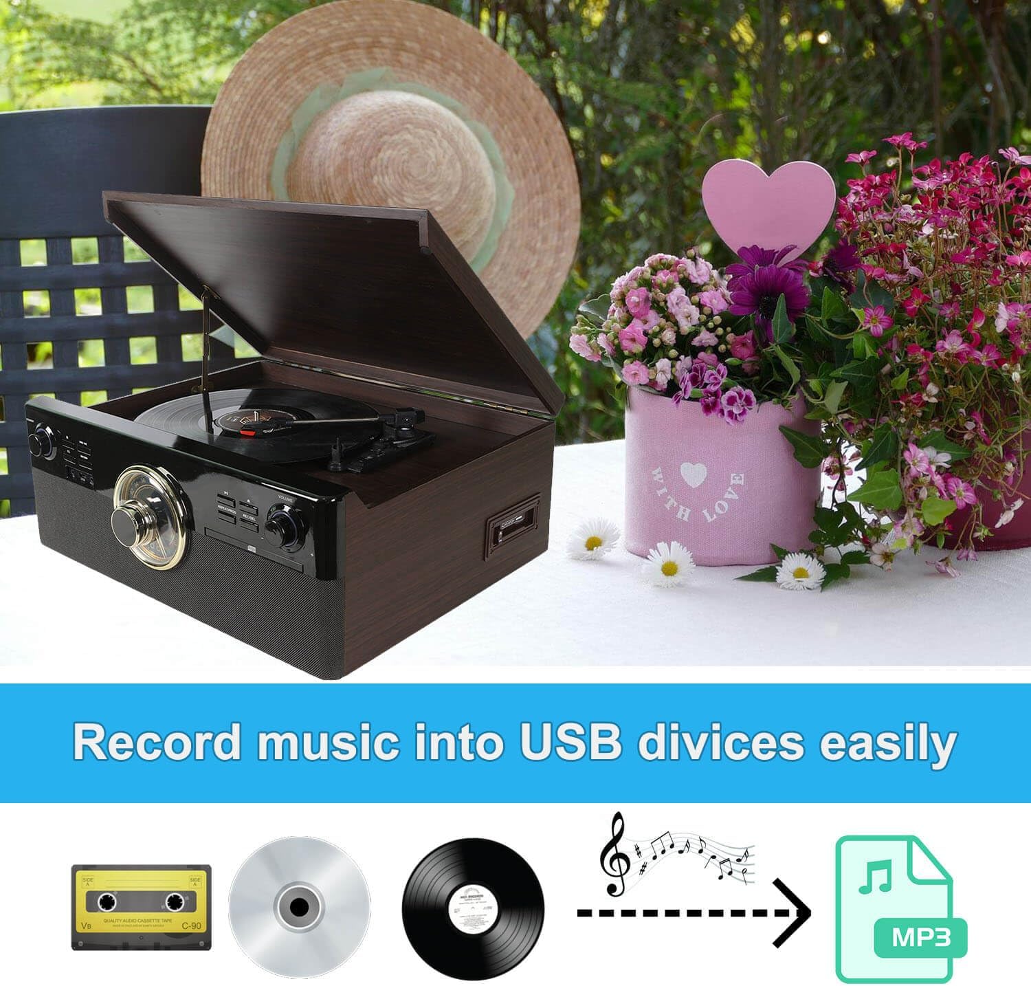 10-in-1 Vintage Bluetooth Record Player with Speakers, All-in-One Turntable for Vinyl, CD, Cassette & USB Recording, Perfect for Home Audio Gifts