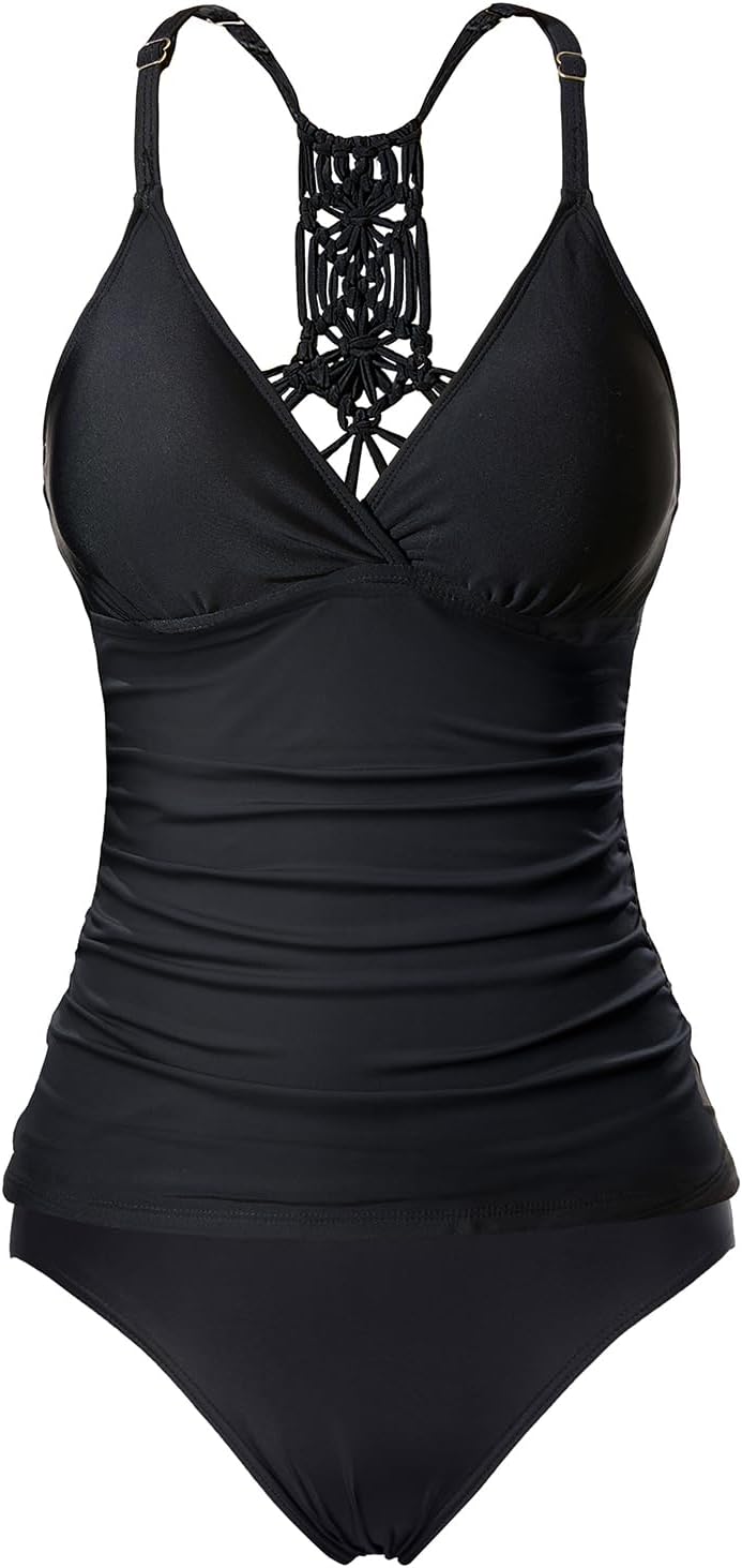 Holipick Tummy Control Two Piece Tankini Set Swimsuits for Women V Neck Tankini Top Bathing Suits with Swim Bottom