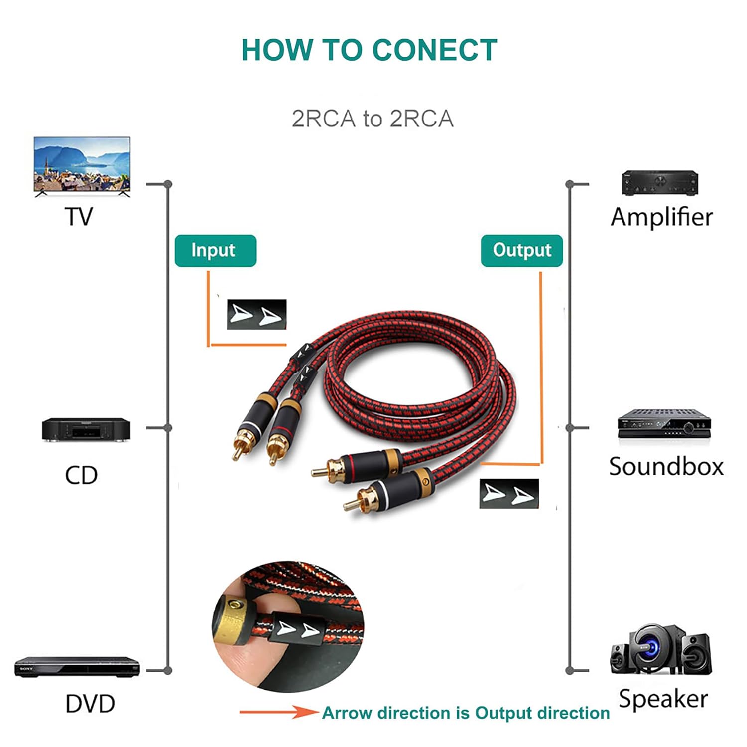 Cable de audio RCA de 2 macho a 2 macho de 2.5 pies (0.75M) que mejora las conexiones de audio; ideal para audiófilos, sistemas de entretenimiento para el hogar y alta fidelidad (HiFi).