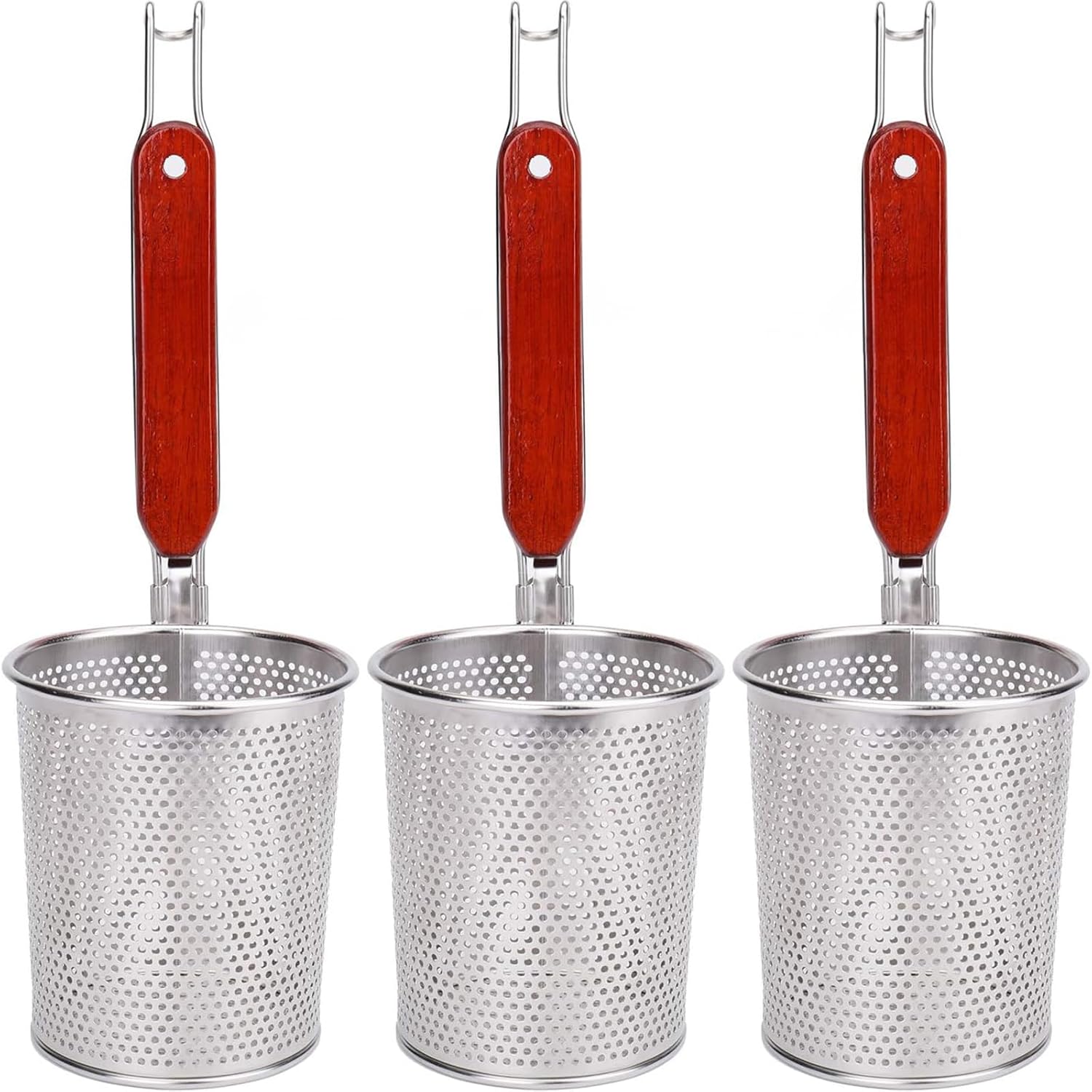 Lawei 3 Paquetes Cesta de Pasta de Malla con Mango de Madera y Colador de Malla de Acero Inoxidable para Pasta, Fideos, Dumplings
