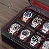 12 LARGE WATCH COMPARTMENTS: Each cushion holds a small or large watch neatly in place, up to 60mm next to each other. There is plenty of space between the lid and cushions to accommodate watches of all size.