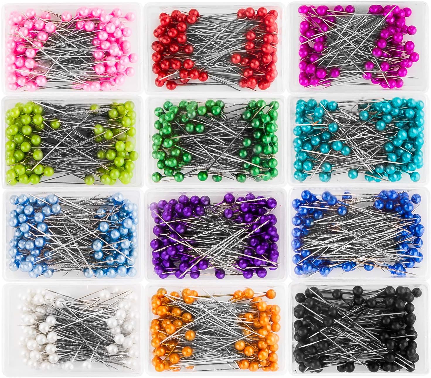 AIEX 1200 Piezas de Agujas de Coser de Cabeza Multicolor Rectas para Costurera, Joyería, Decoración, Proyectos de Costura (1.57 pulgadas)