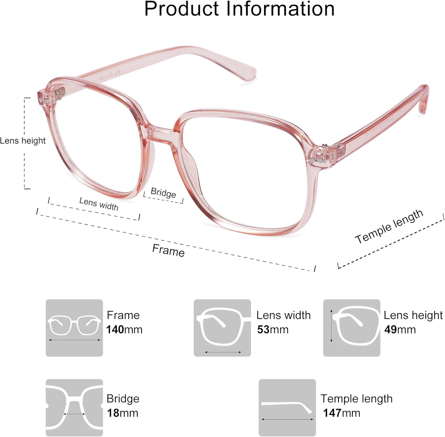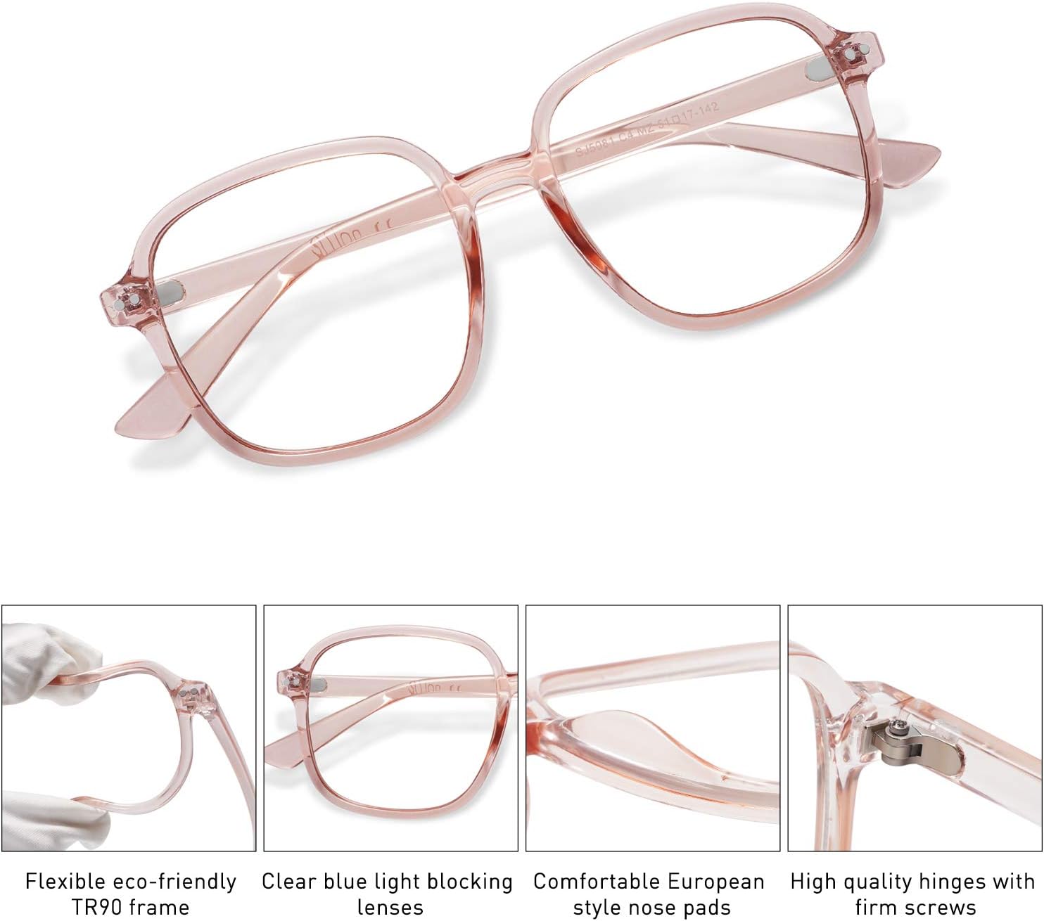 Gafas Bloqueadoras de Luz Azul Cuadradas SOJOS Oversized para Mujeres Marco TR90 Filtro SJ5081