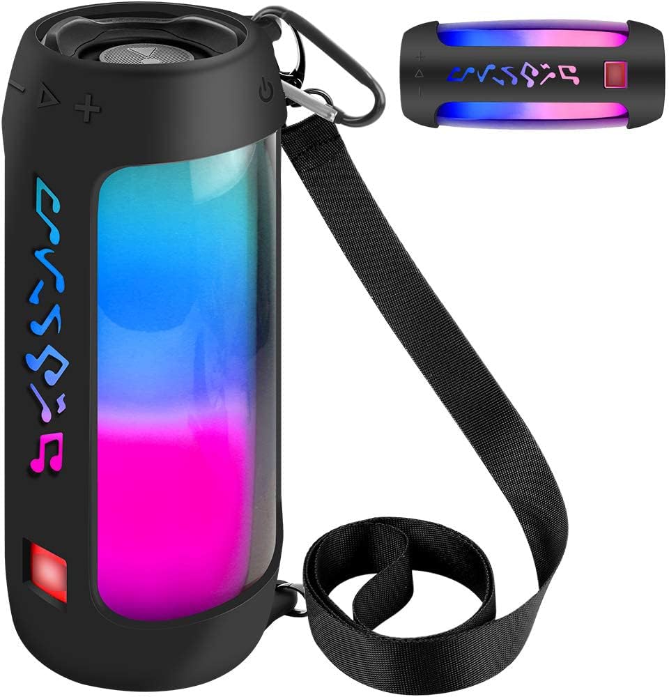 Funda pequeña para altavoz Bluetooth: material de silicona duradero, resistente y duradero, proporciona una protección perfecta al altavoz, evita que se raye, se golpee y se caiga, y lo mantiene ajustado y seguro. Puede añadir una capa adicional de protección cuando se utiliza con la funda rígida JBL Pulse 4
