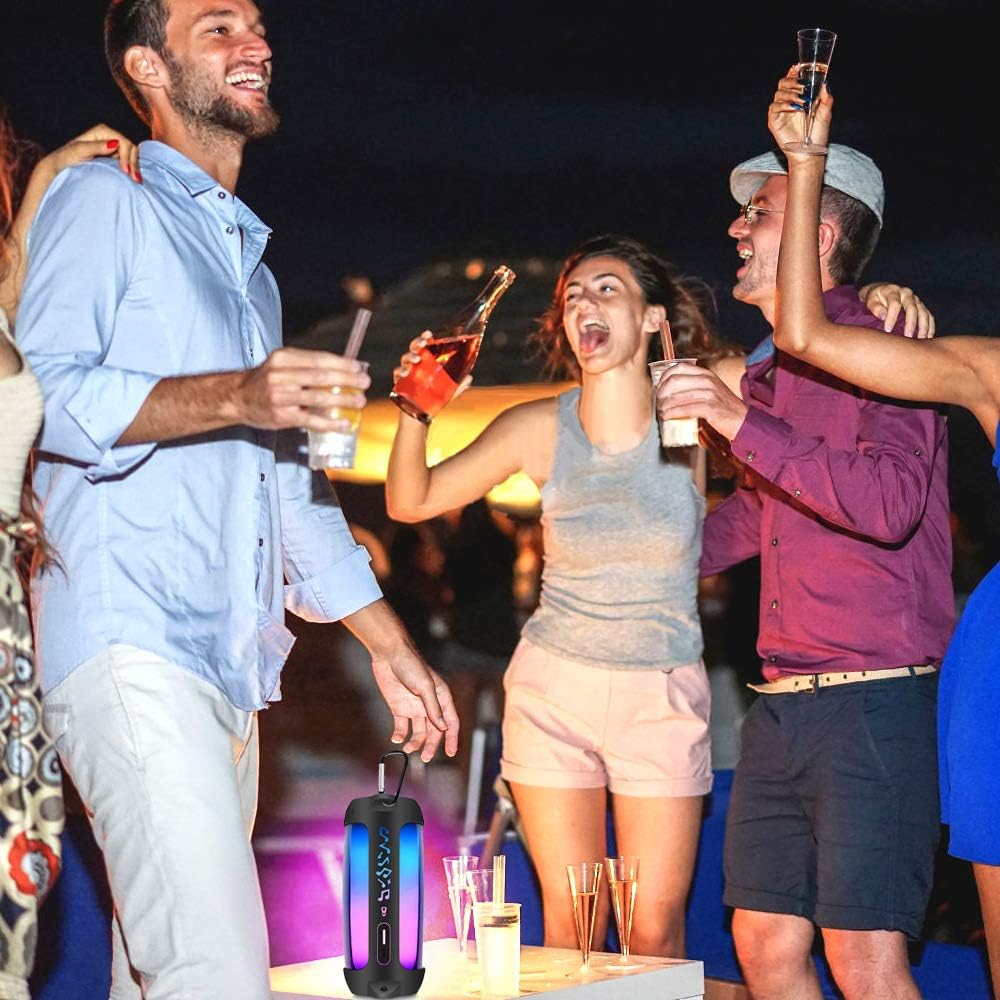 Diseño práctico: está diseñado principalmente para facilitar su transporte al aire libre, tiene 2 ganchos en los laterales, con esta trabilla de goma puedes fijar el altavoz a casi cualquier cosa, también puedes abrochar la correa para el hombro, es fácil de llevar a cualquier parte, viene con un mosquetón práctico para llevarlo a la mochila, la bicicleta y más, sin importar lo que estés haciendo senderismo, sujetándolo, etc.