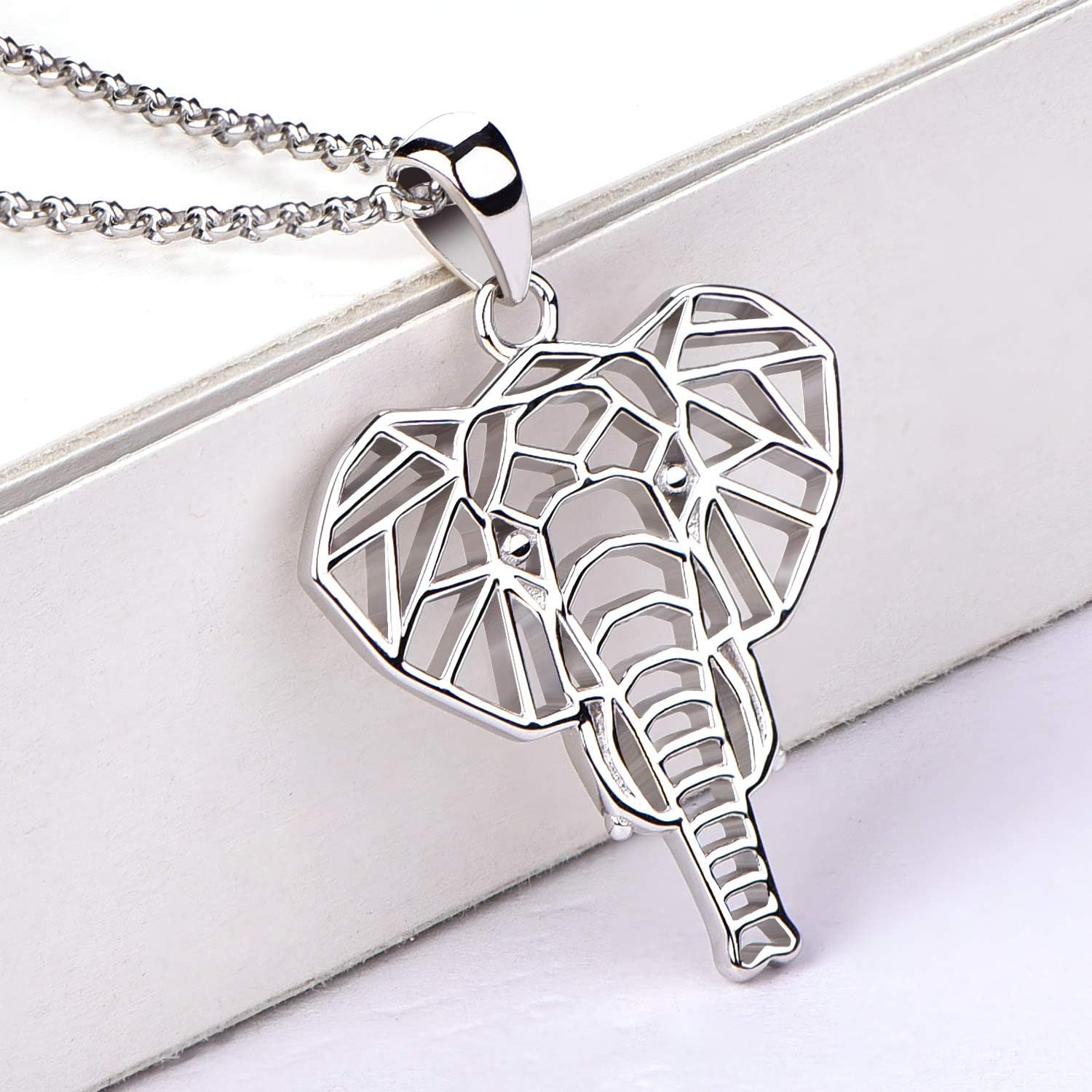 JO WISDOM Women Elephant Necklace,925 Sterling Silver Lucky Animal Amulet Pendant Necklace