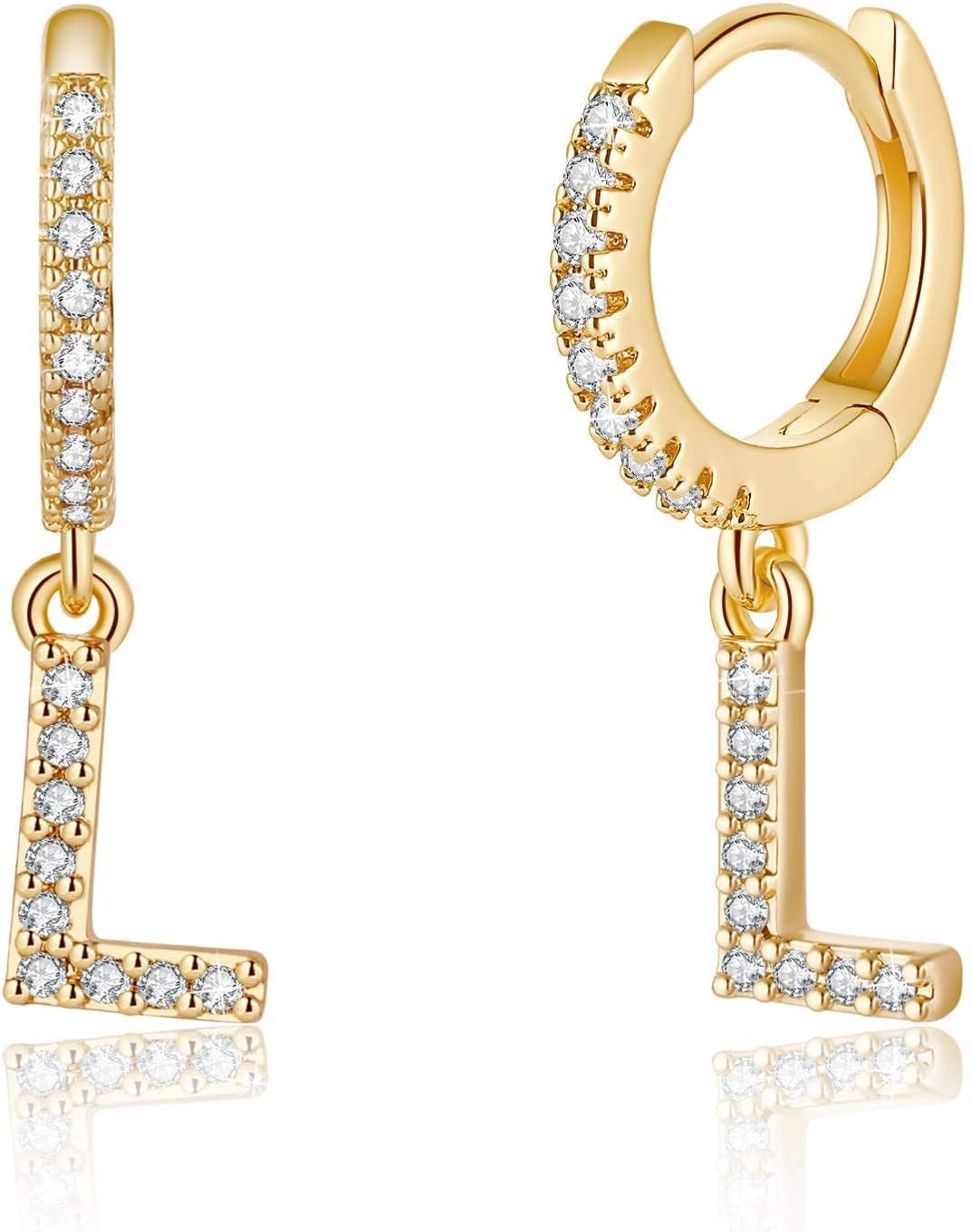 Initial Earrings for Women, 925 Sterling Silver Post Hypoallergenic Small Huggie Hoop Earrings Gold Plated Cubic Zirconia Initial Earrings Jewelry