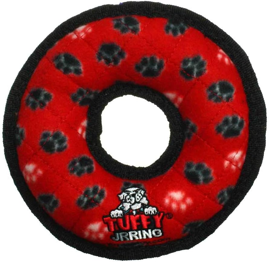 TUFFY - World's Tuffest Soft Dog Toy - Ultimate Ring -Squeakers - Multiple Layers. Made Durable, Strong & Tough. Interactive Play(Tug, Toss & Fetch). Machine Washable & Floats (Junior 2 Pack, Red Paw)