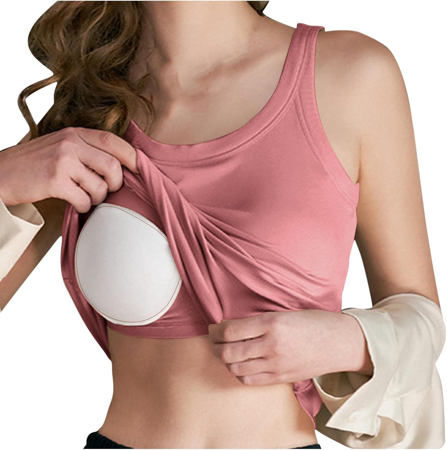 Camisole Tops for Women Summer Casual Sleeveless Cotton Basic Padded Tank Top with Built in Bra Workout Yoga Shirts