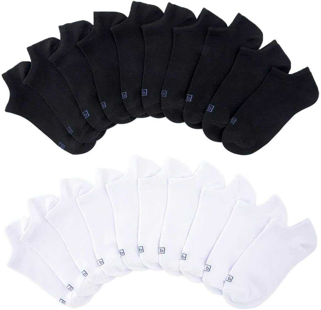 KBell Ladies' No Show Sock, 10-pair, Black/White, Size 4-10