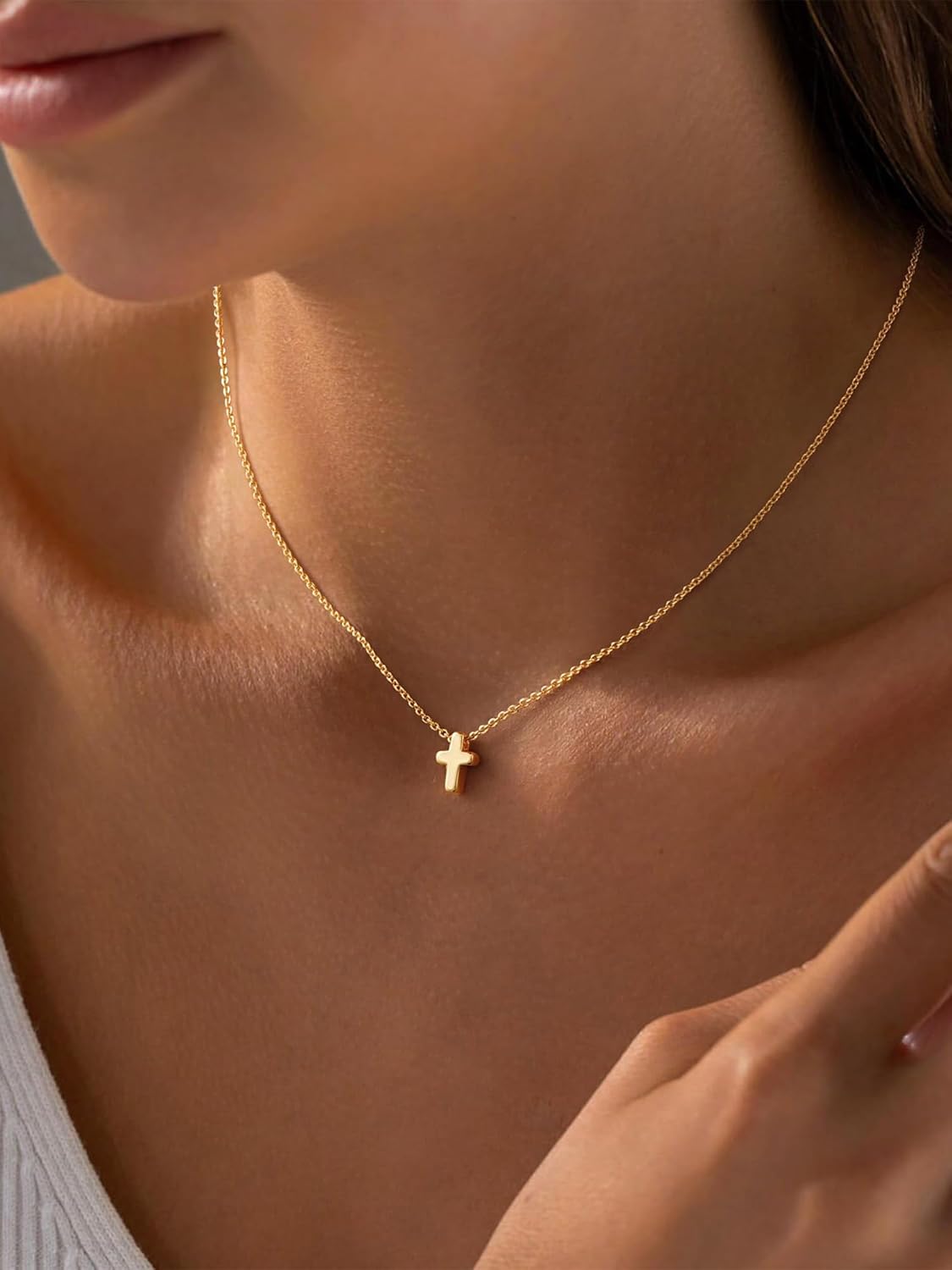 M MOOHAM Cross Necklace for Women - Dainty Cute Bubble 3D Cross Pendant Necklace Sideways Cross Choker Layered 14K Real Gold Plated Cross Necklace Gifts for Women Girls
