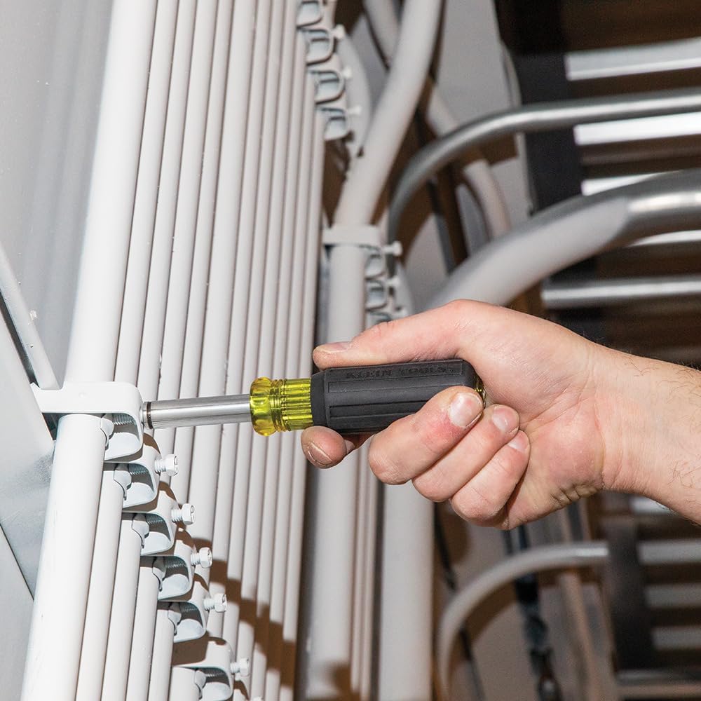 The integrated screwdriver / nut driver shaft on the 11-in-1 Magnetic Screwdriver/Nut Driver holds 8 popular tips and converts to 3 nut driver sizes. The shaft contains powerful Rare-Earth magnets for better fastener retention and is interchangeable for quick and easy switch out. The Cushion-Grip handle allows for greater torque and comfort. This versatile 11-in-1 multi-tool has everything the professional tradesperson needs to make the job a little easier. For more than 160 years, Klein Tools has manufactured premium-quality, professional-grade hand tools that deliver the performance, durability and precision needed to get the job done right. Our family of engineers, workers and craftsman continue to put six generations of expertise into every tool we create by using only the highest quality materials, superior workmanship, and keeping manufacturing as close to home as we can. Klein isn't just the name of our company, it's also our family name. And since we're an American company that's family-owned and family-run, you know you can count on us to be here tomorrow. Klein Tools doesn't just make great products, we make great products that stand up to the demands of the professionals who use them every day ... Since 1857.