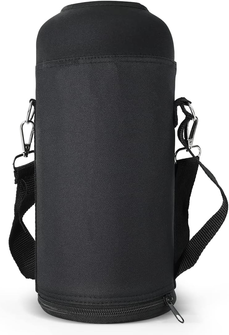 Portable & Handsfree: 1 handle + 1 padded adjustable shoulder strap for a safe and convenient way to carry bulky water bottles. With a side handle, one hand can easily hold and drink water from a 64-ounce grower. Ideal for camping, hiking, cycling, boating and other outdoor activities. The shoulder straps are 1 inch wide and comfortable, extending from 27 inches to 54 inches, making them ideal for adults and young people.