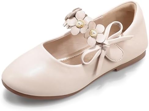 PANDANINJIA Toddler Girls Dress Shoes Flower Girl Flats Pearls Bow Mary Jane Wedding Party Flora Shoes