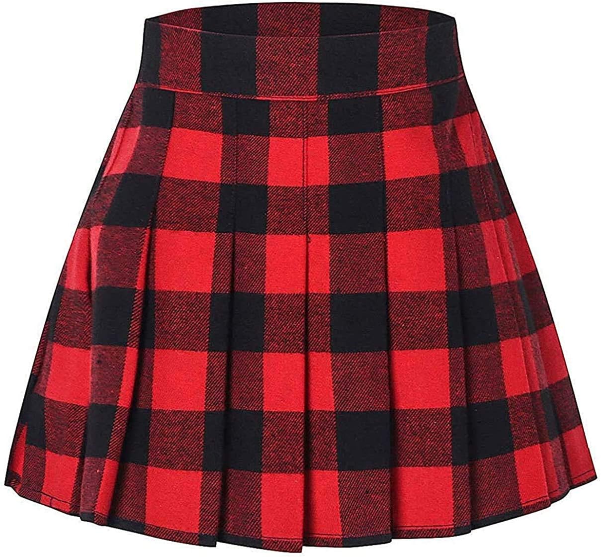 Junior Teen Girls Womens School Uniform Cosplay Costume Plaid Pleated Short Skirt, Red Black Plaid, XX-Large