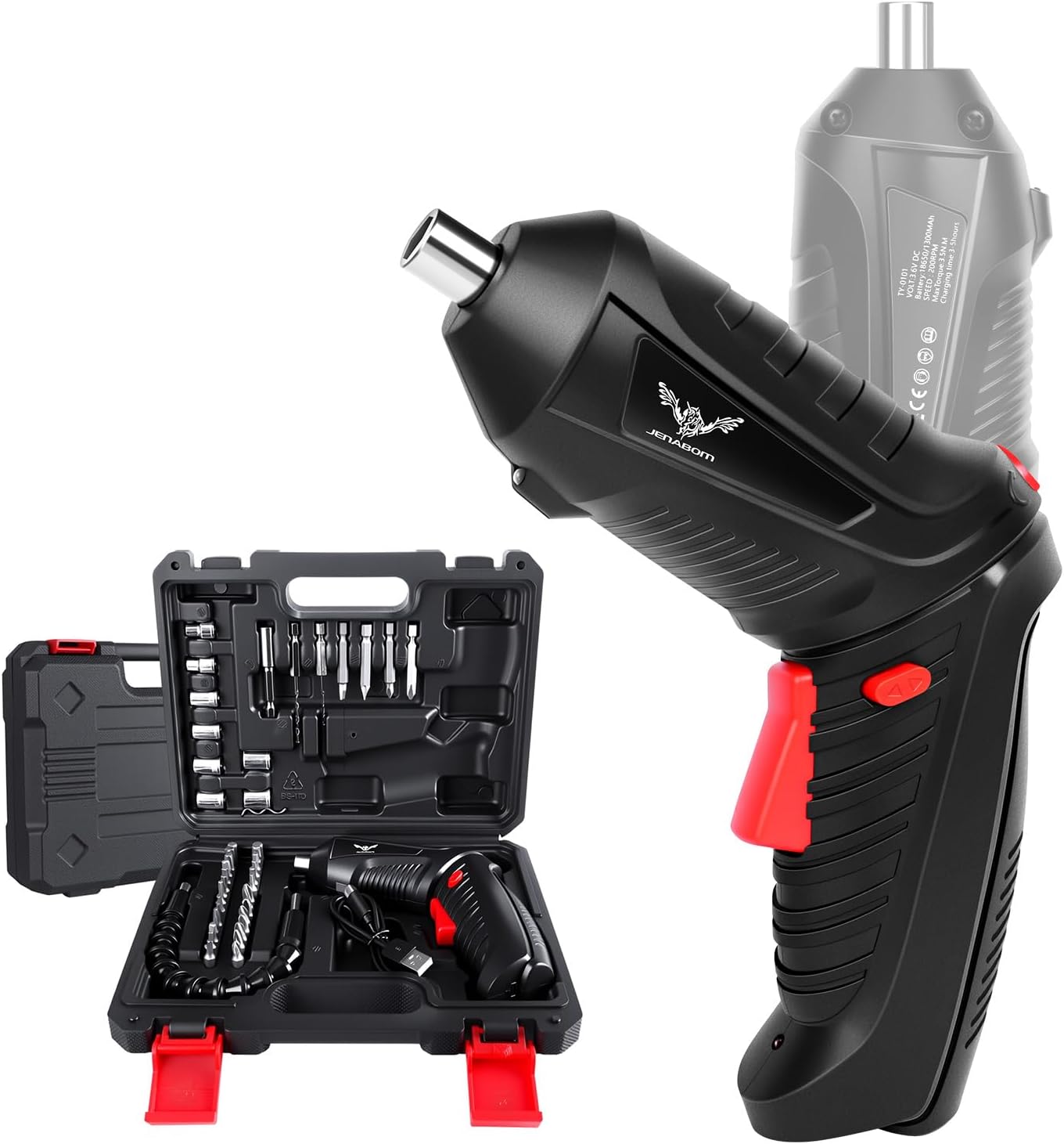 Power Screwdriver Cordless, JENABOM Screwdriver Bits Set Rechargeable, 3.6V Li-ion 3.5N·m Max Torque Electric Rotatable Drill Screwdriver for Home Improvement DIY Project, 47 Pcs