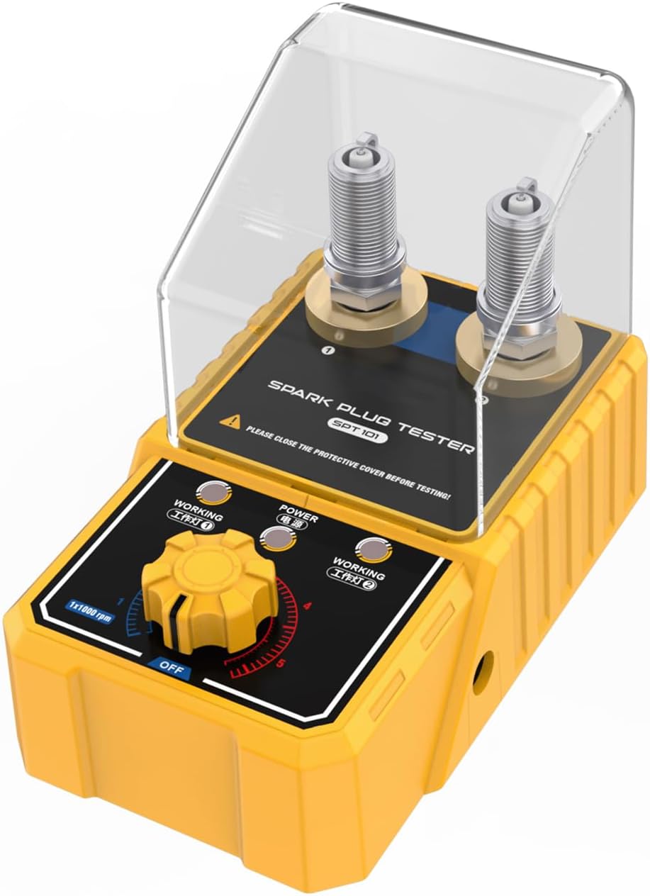 Spark Plug & Ignition Tools SPT101 Spark Tester Plug 2-Holes Detector Ignition Spark Plug Tester Analyzer 0 a 6000RPM Con Prueba de Rendimiento de Bujes de Encendido, Simulación de Rendimiento del Motor, Plug&Play 110V/220V