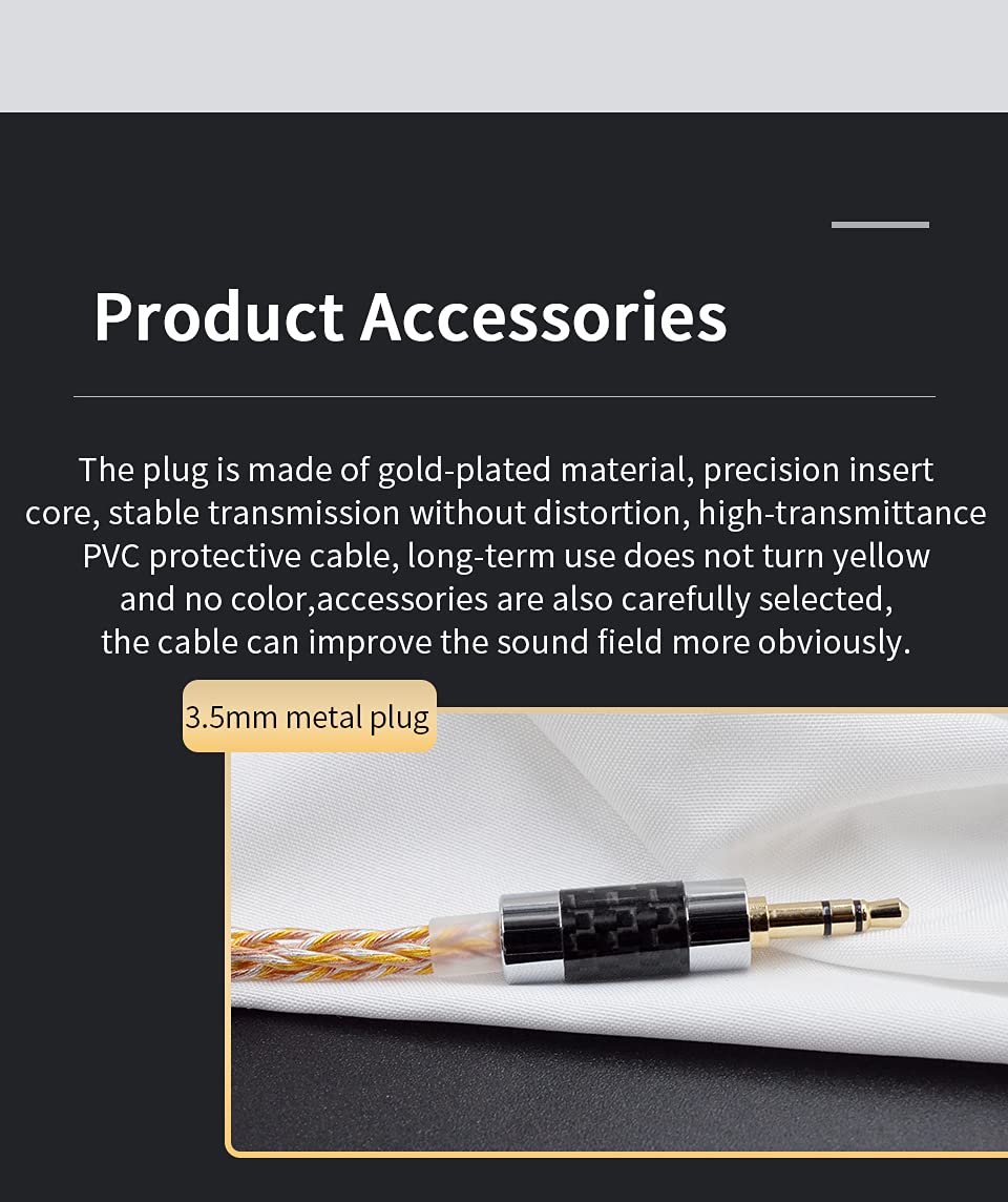【Clavija dorada estándar de 0,75 mm】La clavija estándar de 0,75 mm, común en la mayoría de los auriculares del mercado, equivale a aumentar la vida útil del cable.