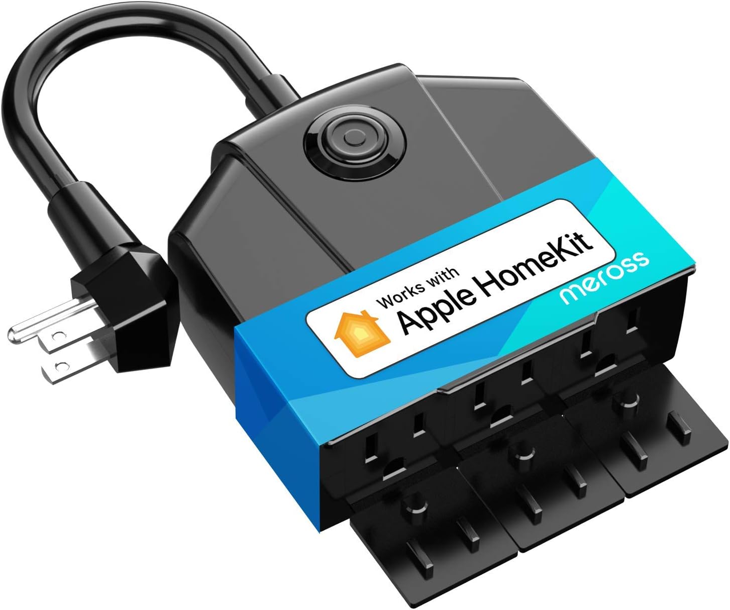 Outdoor Smart Plug, meross Outdoor Wi-Fi Outlet with 3 Independent Sockets Compatible with Apple Homekit, Alexa and SmartThings, Voice & Remote Control, Timer, 2.4 GHz only,Black