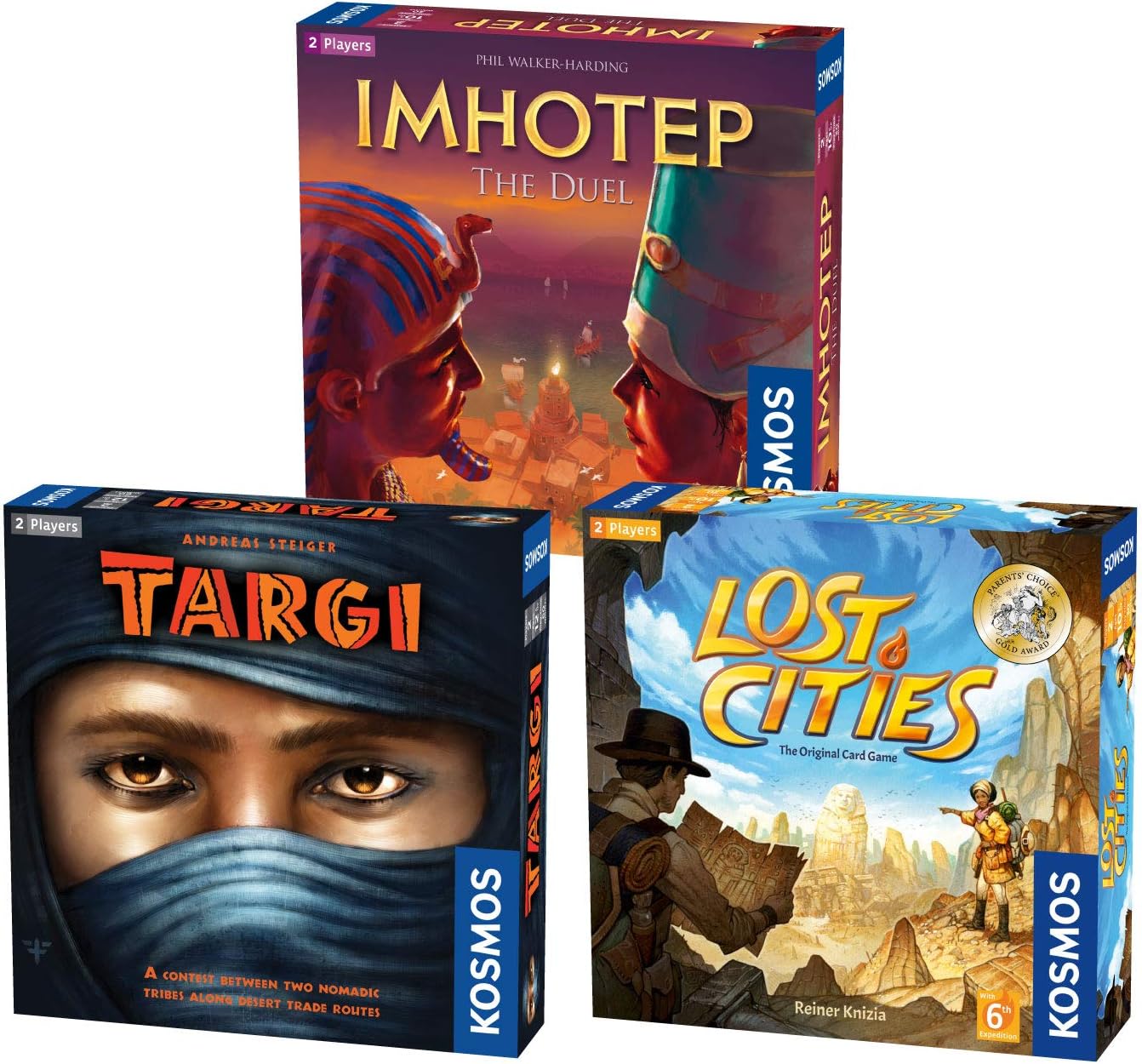Paquete de 3 Juegos de Tablero para 2 Jugadores | Imhotep: El Duelo, Targi, Juego de Cartas Ciudades Perdidas | La Serie de Juegos para 2 Jugadores Premiada de Kosmos