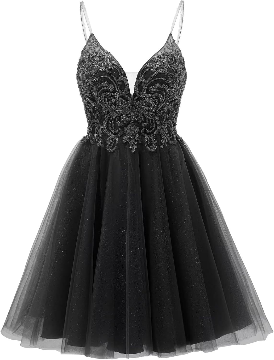 Rjer Sparkly Tulle Homecoming Dresses 2025 Spaghetti Strap Short Prom Party Dress for Teens