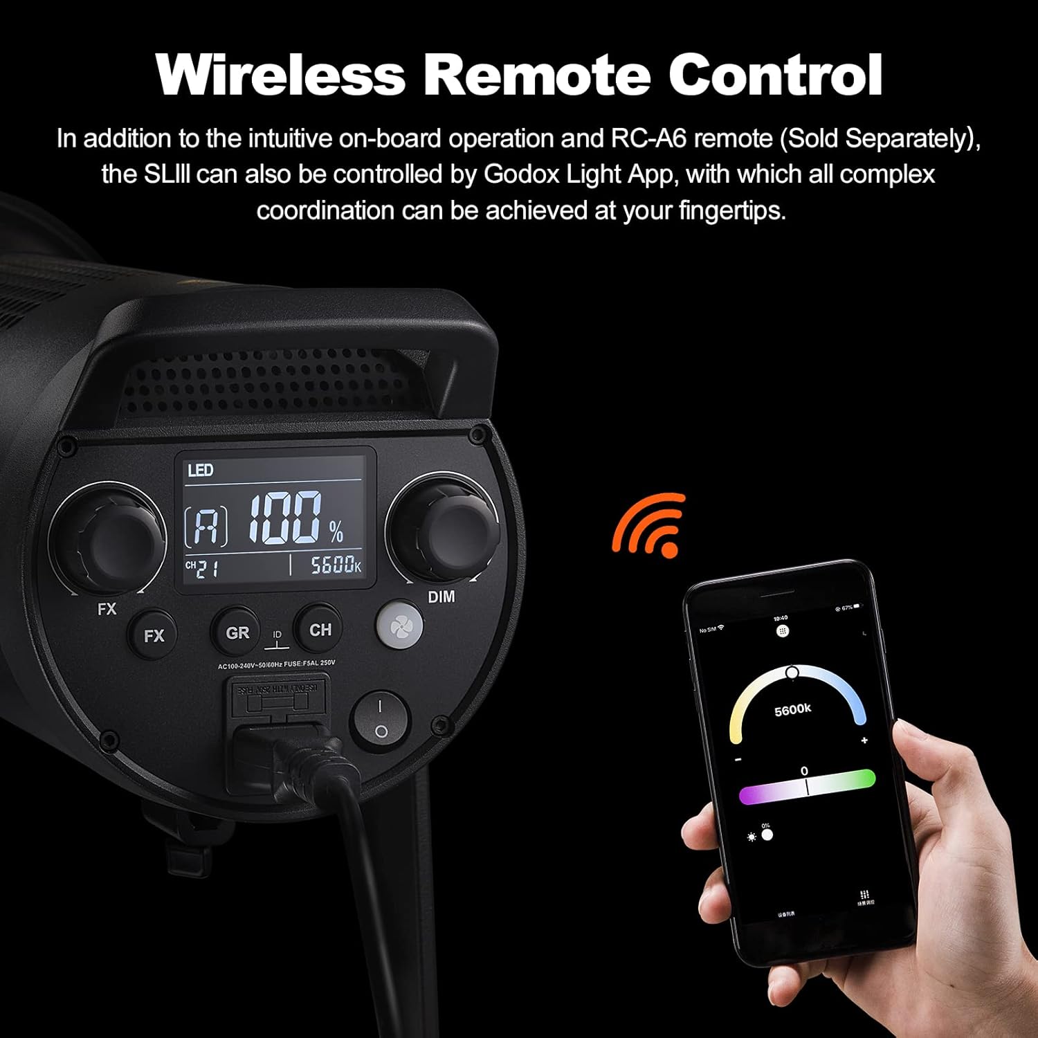 SL 150III studio lights with Premium heatsink and built-in fan to offer excellent heat dissipation, keeping at a negligible noise while working. It is perfect for sound-sensitive environments as you can turn off the fan at a touch of Silent mode button to eliminate the noise during use.