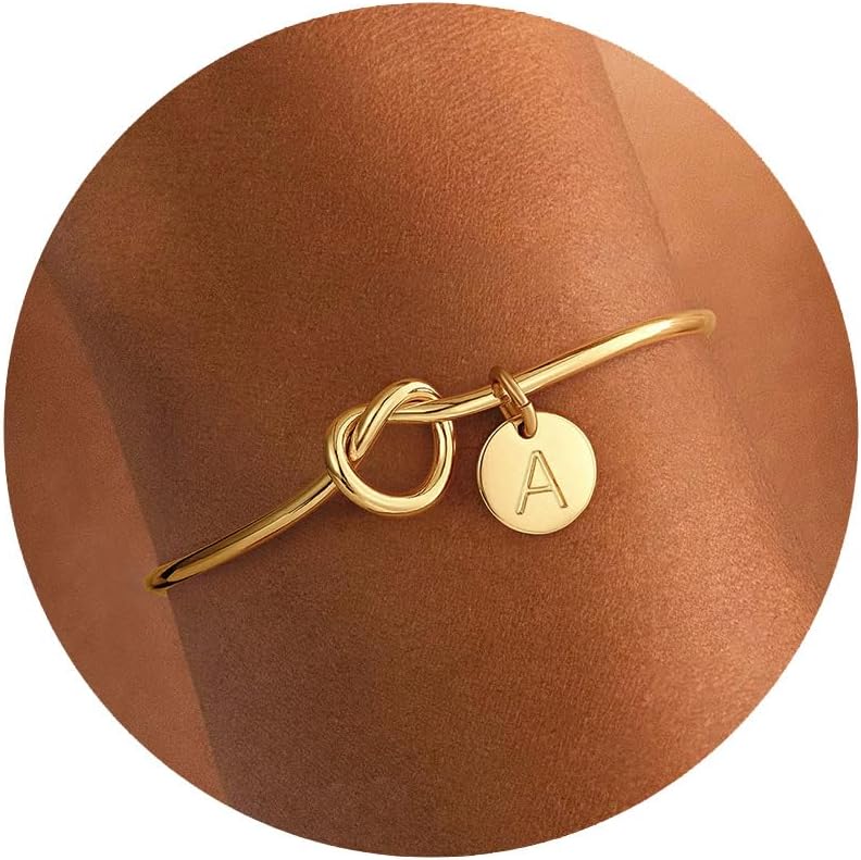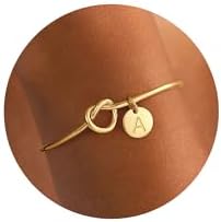 M MOOHAM Gold Initial Bracelets for Women - Dainty Tie the Knot Letter A-Z Initial Bracelet for Women Gold Cuff Bracelet for Womens Jewelry Personalized Bridesmaid Proposal Wedding Gifts