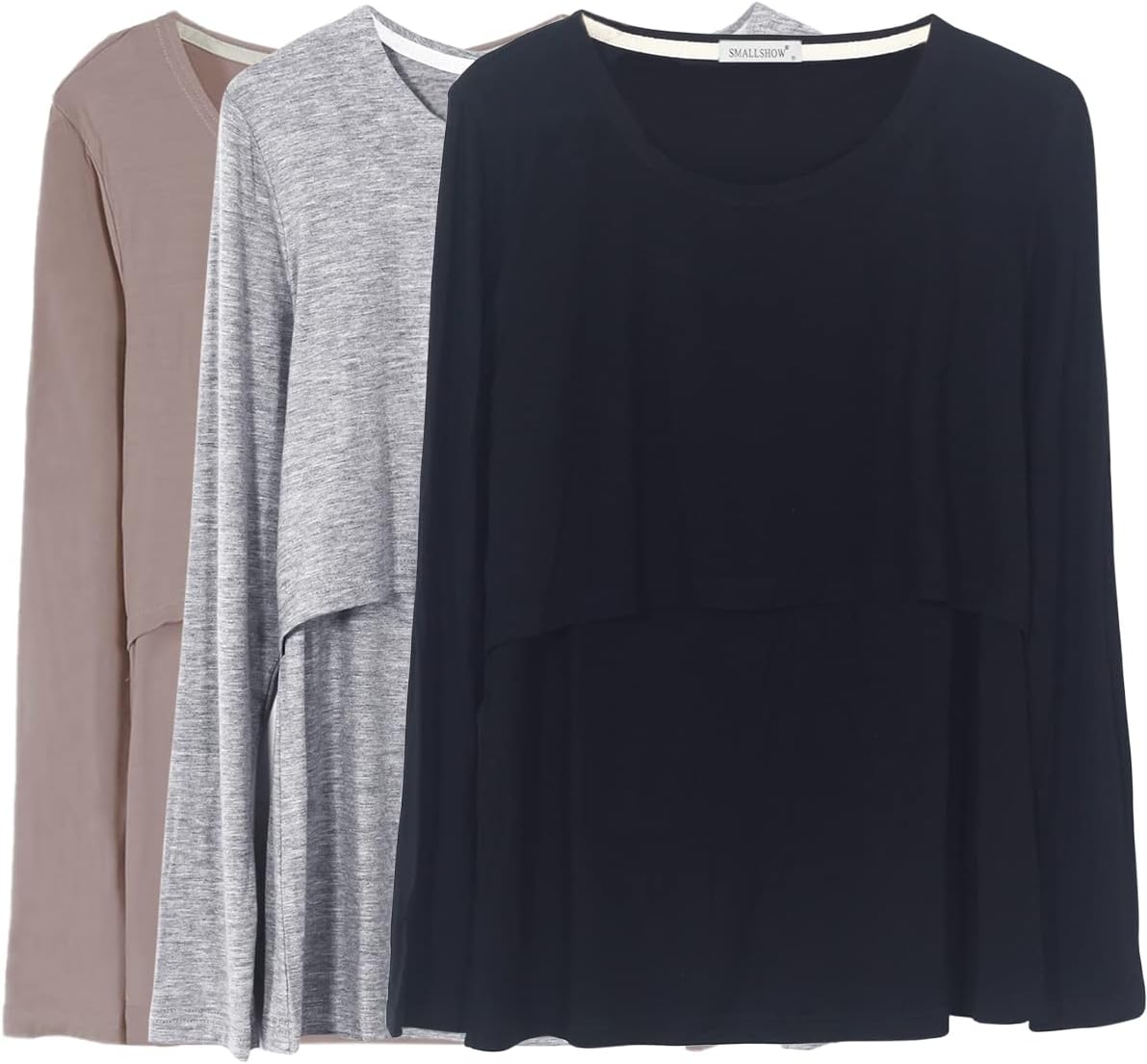 Smallshow Women's Nursing Tops Long Sleeve Shirts for Breastfeeding 3-Pack