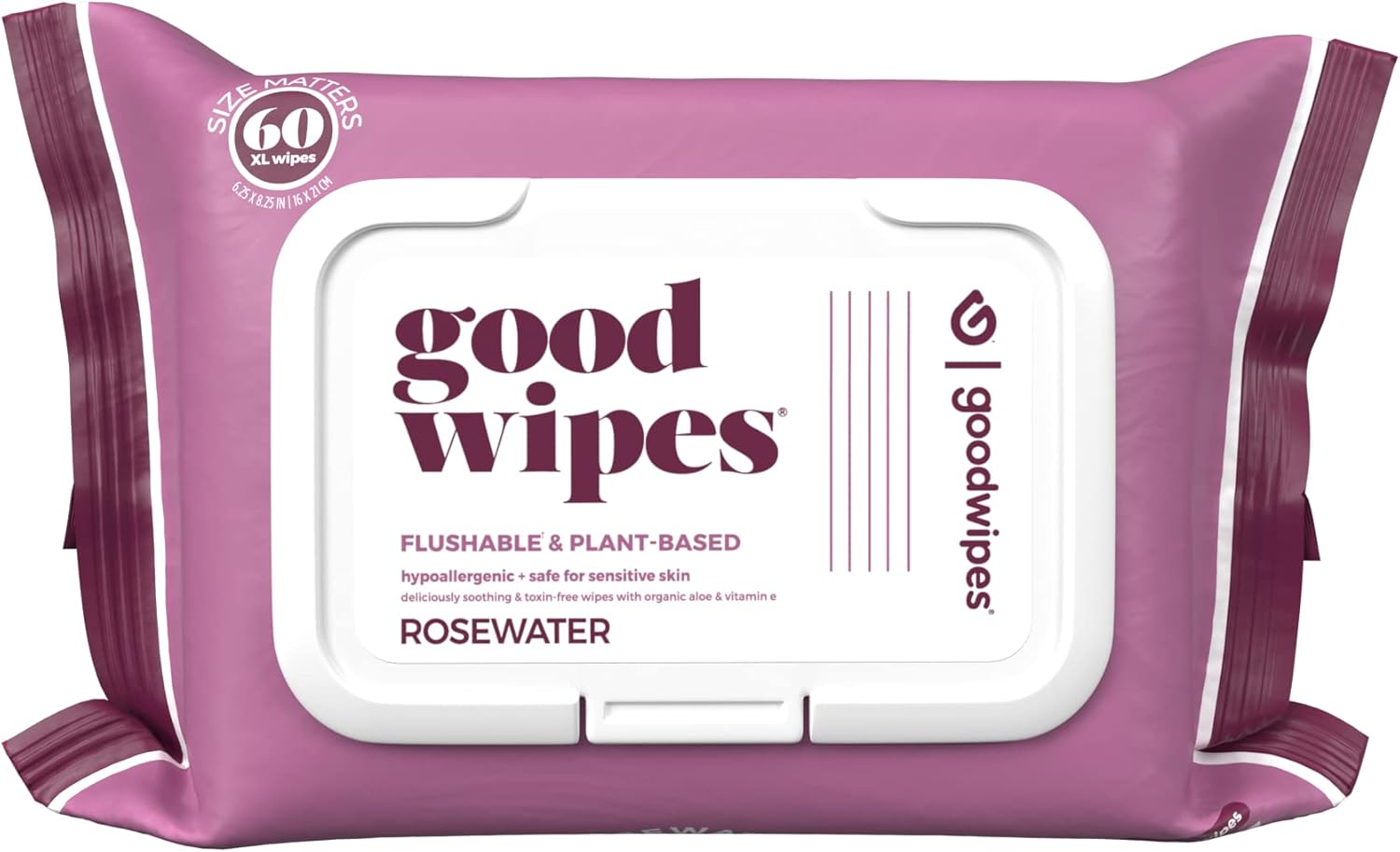 Goodwipes Flushable Butt Wipes Made with Vitamin E & Aloe – Soft & Gentle Wet Wipe Dispenser for Home Use, Septic & Sewer Safe – Largest Adult Toilet Wipes – Rosewater, 60 Count
