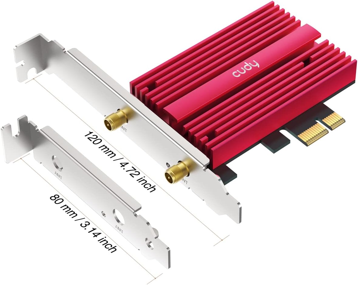 Tarjeta PCIe Cudy New AX5400 WiFi 6E, Adaptador Bluetooth 5.2 PCIe, AX210 Inside, Adaptador Inalámbrico Tri Band, Bluetooth 5.2, Soporte Bajo Perfil, WPA3, MU-MIMO, OFDMA, Disipador de Calor, Windows 11, 10, WE4000