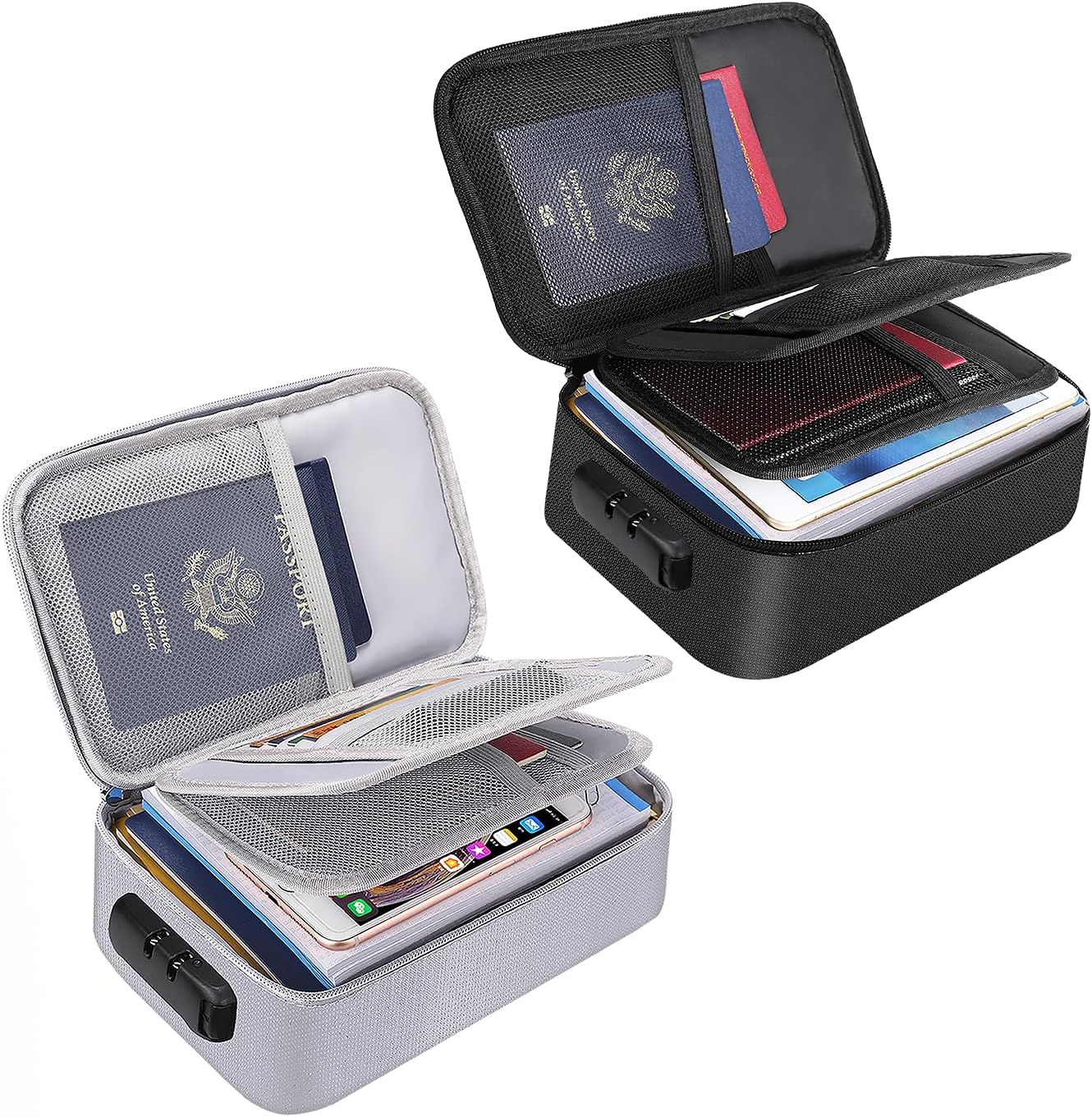 Small fireproof bag set: The small file and money organizer includes a black small fireproof bag with lock,a silver small fireproof bag with lock,a lock manual.The newly designed small fireproof bag is easy to carry, easy to fold and easy to hide.It can store your Currency,Keys,Cash,Card,Passport,Check,Bill,Coin in a safe and orderly way.Great way to organize your small items easy for you to find whatever items you looking for quickly.