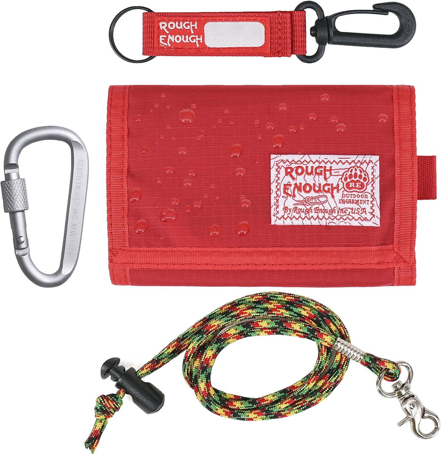 Rough Enough Kids Wallet for Boys Girls Preppy Teen with Neck Lanyard Keychain Cordura Red