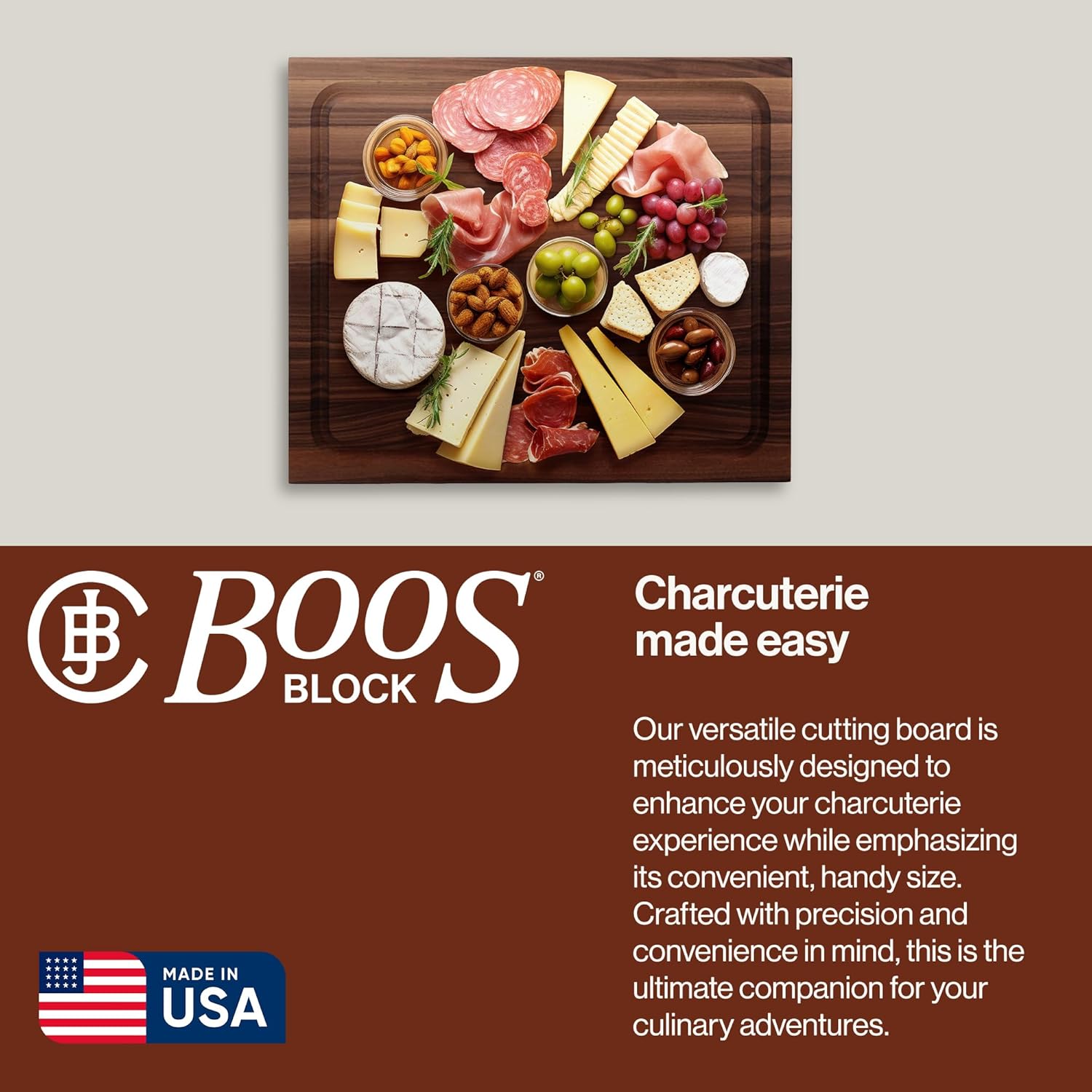 John Boos BBQ Series Rectangular Wooden Walnut Cutting Board 17”x21” – 1.5” Thick, 15-lb Reversible Butcher Block with Juice Groove, Edge-Grain & Finger Grips – Made in the USA