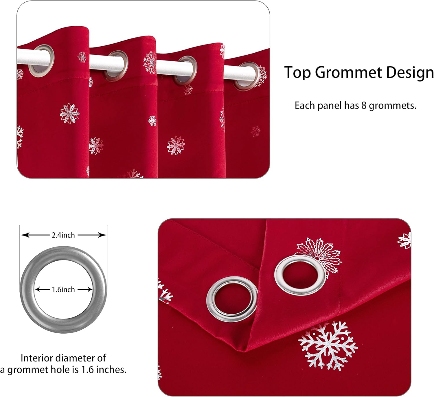 WHAT'S IN THE PACKAGE? Each set includes 2 Christmas blackout curtains, each panel measures 52-inch width by 95-inch length. The curtain is finished with 8 silver grommets with a 1.6-inch inner diameter.