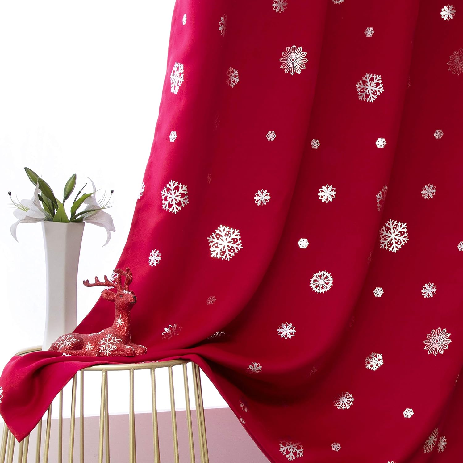 NOISE REDUCING AND TOTAL PRIVACY PROTECTING DRAPES: LORDTEX Christmas room darkening curtains are thick and heavy. They can reduce noise and provide privacy. They can also be used as space partition curtains. The foil snowflake print design add style and Christmas atmosphere to any space they are used in.