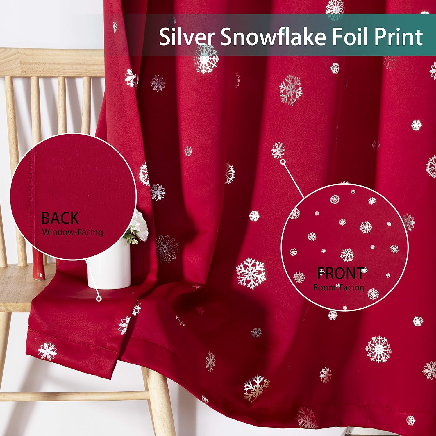 LORDTEX Snowflake Foil Print Christmas Curtains for Living Room and Bedroom - Thermal Insulated Blackout Curtains, Noise Reducing Window Drapes, 52 x 95 Inches Long, Red, Set of 2 Curtain Panels