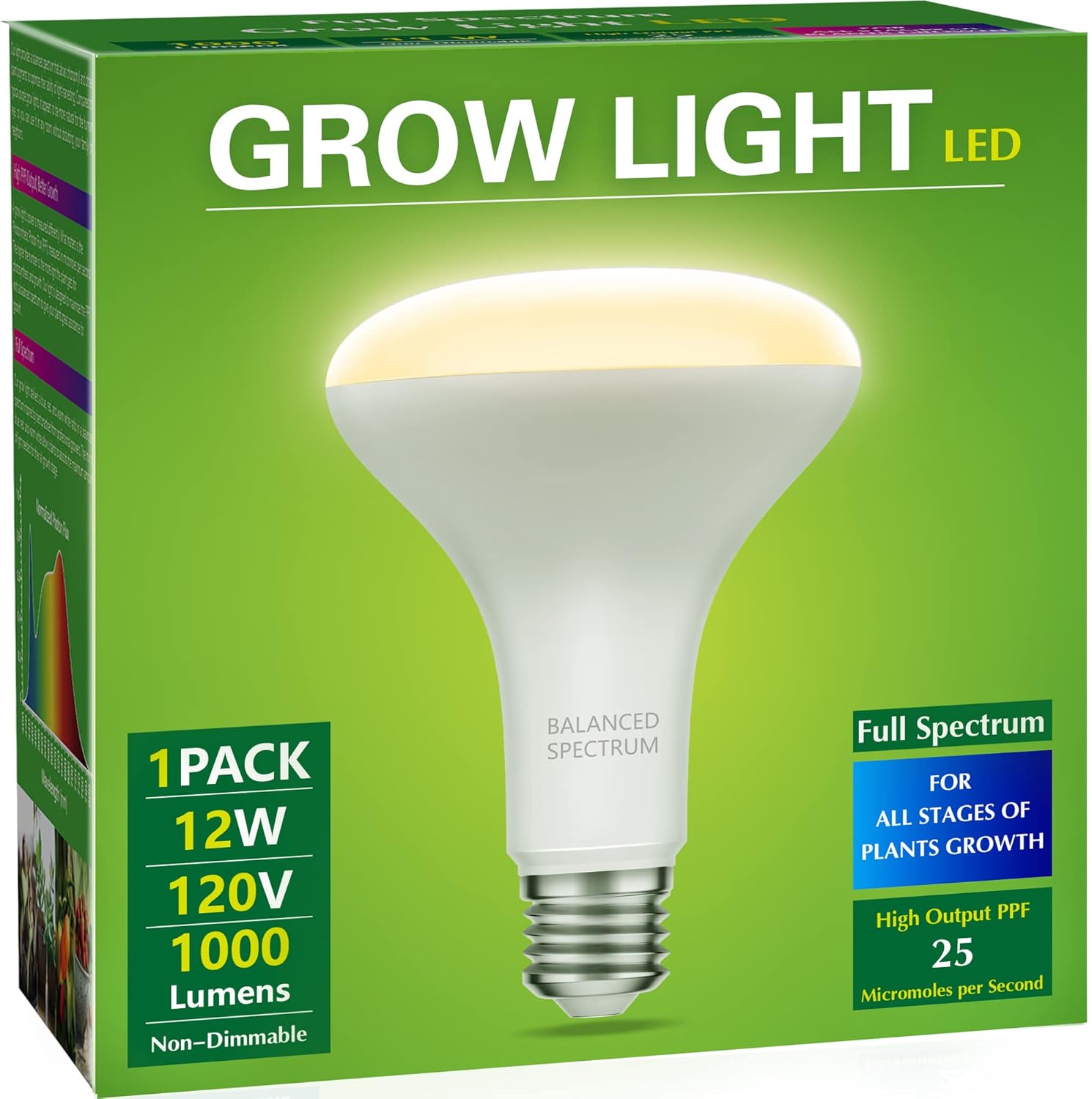 Briignite LED Grow Light Bulb, BR30 Grow Light Bulbs, Full Spectrum Grow Light Bulb 12W, 120W Equivalent, Plant Light Bulbs E26 Base, Grow Light for Indoor Plants, Seedlings, Greenhouse, 1 Pack