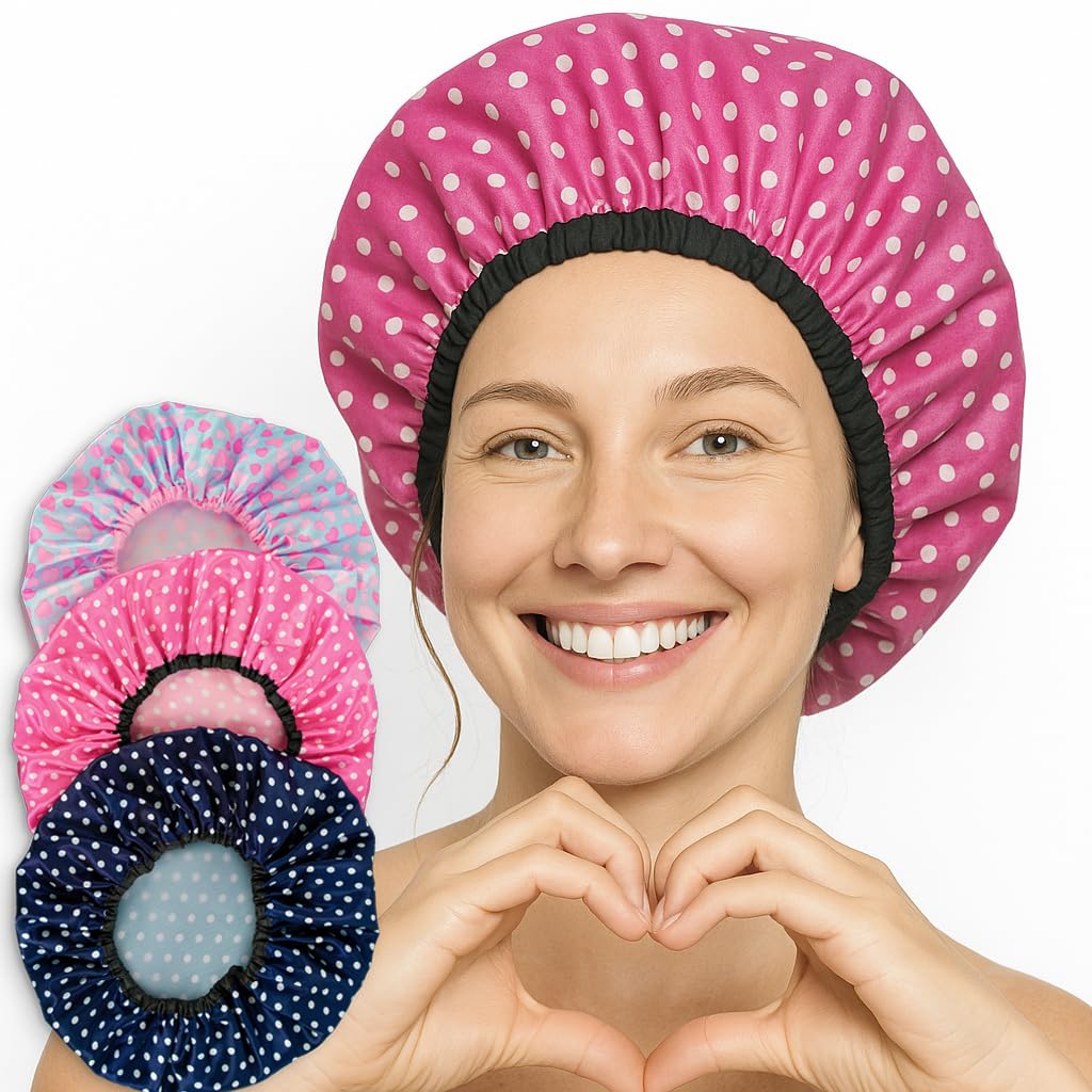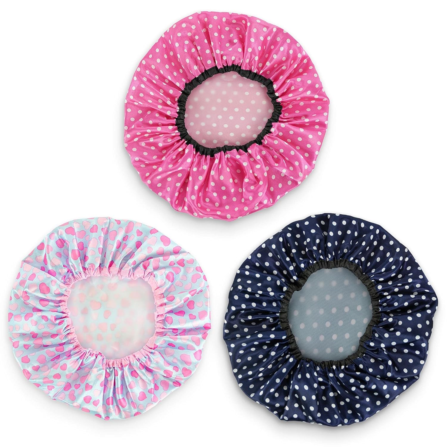 Shower Caps for Women 3 Pack in Different Colors - For Long and Short Hair - Reusable Bath Hair Cap for Ladies, Men and Kids